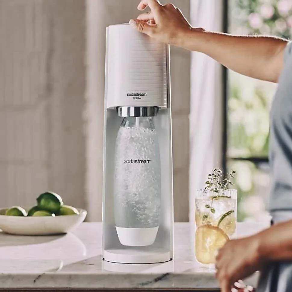 Le SodaStream Terra est un appareil de fabrication de boisson gazeuse pour le confort et l’élégance moderne. Transformez l’eau plate en eau gazeuse fraîche en quelques secondes grâce à la technologie Quick Connect. Design compact et moderne, utilisation sans fil, bouteilles lavables au lave-vaisselle, et réduction des déchets plastiques.