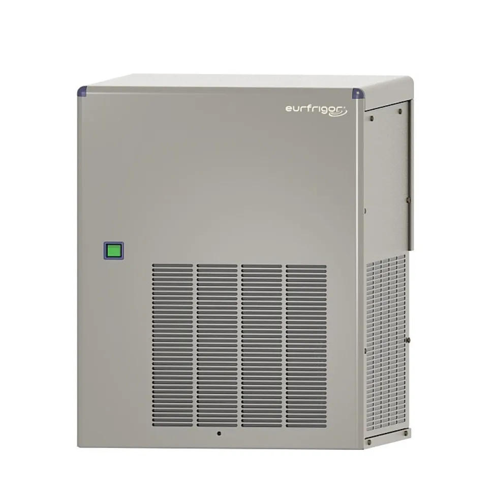 Furnotel Machine à glaçons. Machine à Glace Paillette de la marque Furnotel, fabriqué en inox de haute qualité.Convient à de multiples applications : bars et discothèques (cocktails), restauration (présentation des buffets), poissonneries (présentation des étals), industrie, médical, G.M.SGroupe tropicalisé ambiance +43°CSystème à vis sans fin inoxProduction en continuRefroidissement par airCarrosserie extérieure en inox AISI 304 Scotch BriteSonde pour arrêt automatique de la productionEvaporateur en inox avec isolation polyuréthaneProduction / 24H : 270 kg (Production donnée pour une T° ambiante de +21°C et une T° eau +15°C)Consommation électrique : 1,10 kW (Consommation électrique donnée pour une T° ambiante +43°C)Réserves correspondantes en option : BP240 – BX110 – BX200 – BX350 – ROLBIN 1-2Garantie pièces: 3 ansAlimentation: Mono 230 V + TLargeur (mm): 560Profondeur (mm): 569Hauteur (mm): 695Poids (kg): 83Type de gaz: R290Consommation électrique (W): 1100