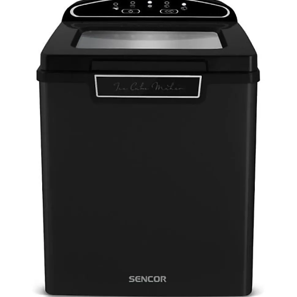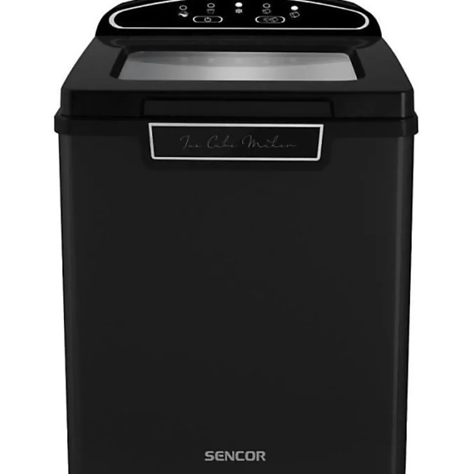 Machine à glaçons compacte Sencor SIM 3000BK noire : produit jusqu’à 12 kg/jour, glaçons prêts en 9 minutes, réservoir 1,9 L avec arrêt automatique, fonctionnement silencieux, panneau LED, compacte et portable — idéale pour maison, camping, bateau et fêtes.