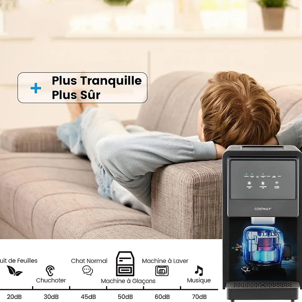 - CONVIENT POUR TOUTES LES OCCASIONS : Que vous organisiez une fête, travailliez dans un bureau ou teniez un bar, notre machine à glaçons fournit des glaçons frais et croustillants quand vous en avez besoin. Elle peut être placée sur un plan de travail pour un accès facile.