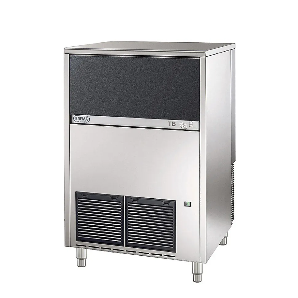 Machine à glaçons de la marque Brema Production de nuggets en continu.Système à vis sans fin en inox poli.Évaporateur en inox Aisi 304 avec isolation polyuréthane.Bloc motoréducteur très performant.Roulement à bille en inox.Carrosserie en acier inox Aisi 304 finition scotch brite.Réserve en ABS alimentaire avec angles arrondis pour un nettoyage facilité.Réserve totalement isolée par mousse polyuréthane injectée 0% HCFC.Portillon isolé escamotable.Interrupteur marche/arrêt avec voyant de fonctionnement en façade.Sonde pour arrêt automatique de la production (réglable).Condenseur refroidi par eau (NB préconisé en cas d’encastrement ou pour un usage dans une ambiance particulièrement chaude).Filtre à poussière sur condenseur en façade démontable sans outil, pour une maintenance facilitée.Pieds inox réglables hauteur 110 – 150 mm.Vidange par gravité (Ø 24 mm).Fluide frigorifique R-290. Livrées avec tuyau d’arrivée d’eau, d’évacuation et pelle à glace. Fonctionnent en ambiance de +10° à +43°C. Alimentation 230 V (mono) – 50 Hz. Prévoir impérativement un dispositif de filtration d’eau type CACF 1.