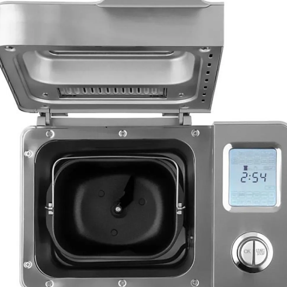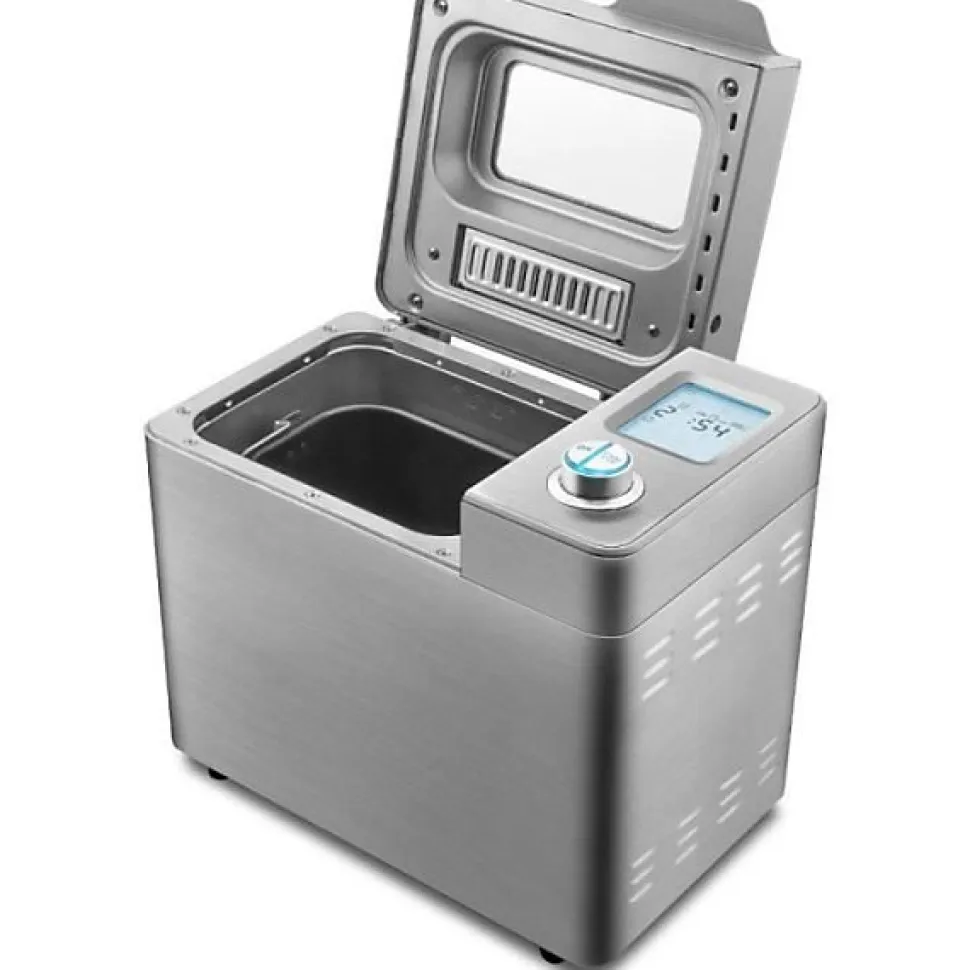 Machine à pain SENCOR SBR 2000SS en acier inoxydable, 550 W, 23 programmes, capacité jusqu’à 900 g, écran LCD, minuterie différée 13 h, maintien au chaud 60 min, moule antiadhésif lavable et accessoires inclus.