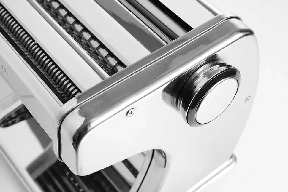 Machine à pâtes électrique Profi Line 230V/70W 258x218x(H)232mm Idéal pour préparer des pâtes fraiches (largeur maximum : 170 mm). Couvercle équipé avec une interrupteur de sécurité. Epaisseur réglable en 7 étapes de 0,2 à 2,5 mm. Trois rouleaux/couteaux en alliage d’aluminium: rouleau à pâte, couteau tagliatelle (6,25 mm) et couteau fettucine (2 mm).