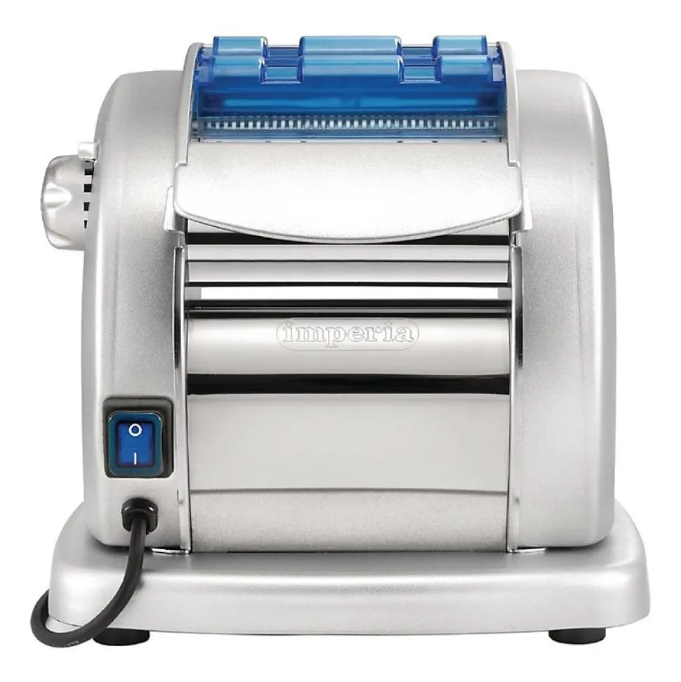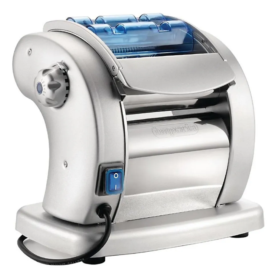 Machine à pâtes professionnelle Conçue avec un revêtement antiadhésif, cette machine vous garantira fiabilité et sécurité dans le temps. Permet d’accéder à 6 différentes épaisseurs. Permet de réaliser des tagliatelles (2 mm) et des fettucine (6.5 mm). Marque: Imperia. Matériel: Acier inoxydable. Alimentation: 220V. 85W. Poids: 6.85kg. Prise: oui. Moteur électrique. Faible encombrement. 78.6 Db.