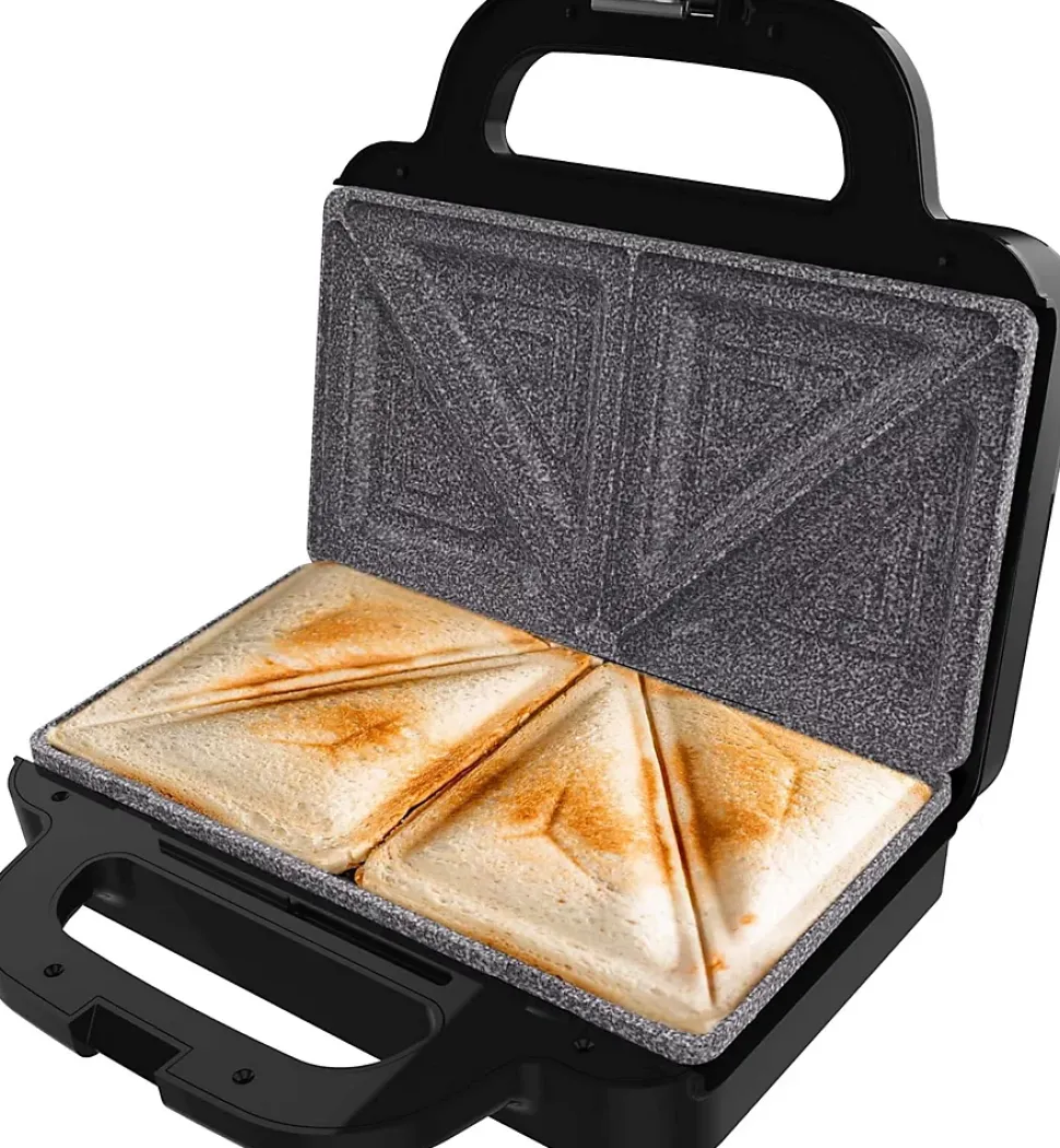 Préparez facilement de délicieux sandwichs avec cette machine à sandwich à plaques triangulaires. Sa capacité supérieure permet de garnir vos sandwichs avec une quantité généreuse d’ingrédients. Équipée d’un revêtement antiadhésif RockStone, elle assure un démoulage facile et un nettoyage rapide. Avec 1000 W de puissance, vos sandwichs sont grillés uniformément en un temps record. Conçue pour 2 sandwichs simultanément, elle dispose de finitions en acier inoxydable, d’un indicateur lumineux de température, d’une base antidérapante et d’une poignée Cool-Touch avec clip pour un rangement vertical pratique.