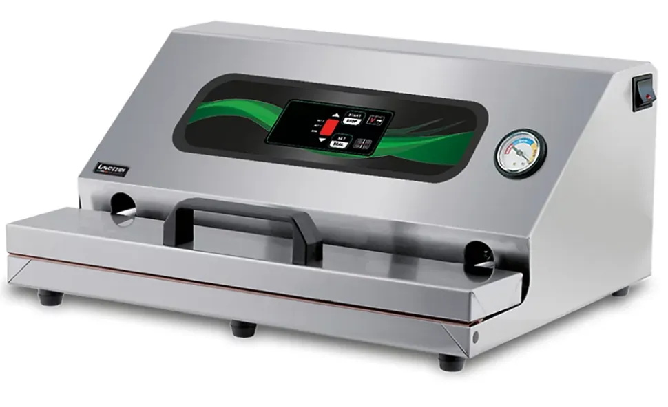 Machine sous vide de la marque Lavezzini Caractéristiques :Structure : acier inoxydable Dim. d’encombrement : 470 x 310 x 180 H Barre de soudure : 450 mm Pompe du vide : Q = 40 LT minPoids : 12 kg Puissance : 0.55 kW Voltage : 230 V/50 Hz