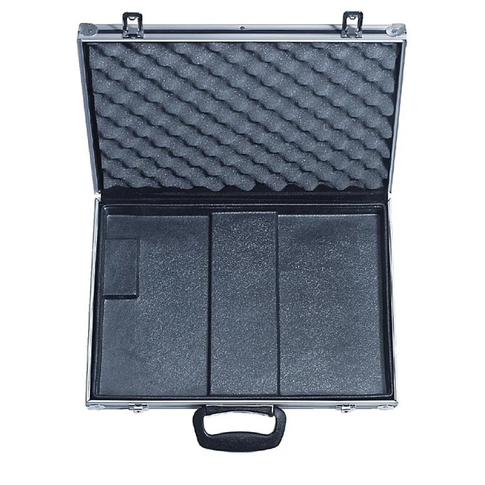 Mallette pour 6 couteaux professionnels Solide mallette à couteaux magnétique pour un transport sûr des couteaux. Peut accueillir 6 couteaux ou ustensiles. Possède une poignée robuste et deux fermetures à charnières en métal. (Fournie vide)Capacité: 6 couteauxDimensions: 60(H)x 430(L)x 320(P)mmPoids: 2,4 kgRangement sûr pouvant accueillir jusqu’à 6 couteauxFourni videProtège les lames de vos couteaux