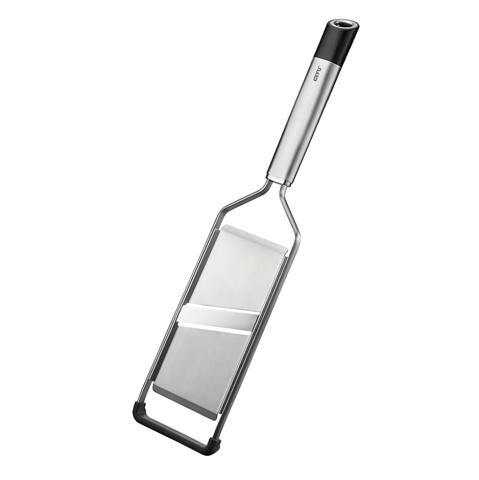 La lame de la mandoline affilée de chaque côté réalise rapidement et efficacement des rondelles de pommes de terre, de légumes et de fruits pour salades, gratins et garniture de gâteaux. – Lame extrêmement tranchante, affilée des deux côtés – Pied antidérapant- Poignée de forme ergonomique- Capuchon de protection inclusCollection : PRIMELINE Matière : Acier inoxydable (inox) Couleur : Argent / Métallique Longueur : 35.00 cm Largeur : 8.00 cm Hauteur : 2.00 cm Compatible Lave-vaisselle