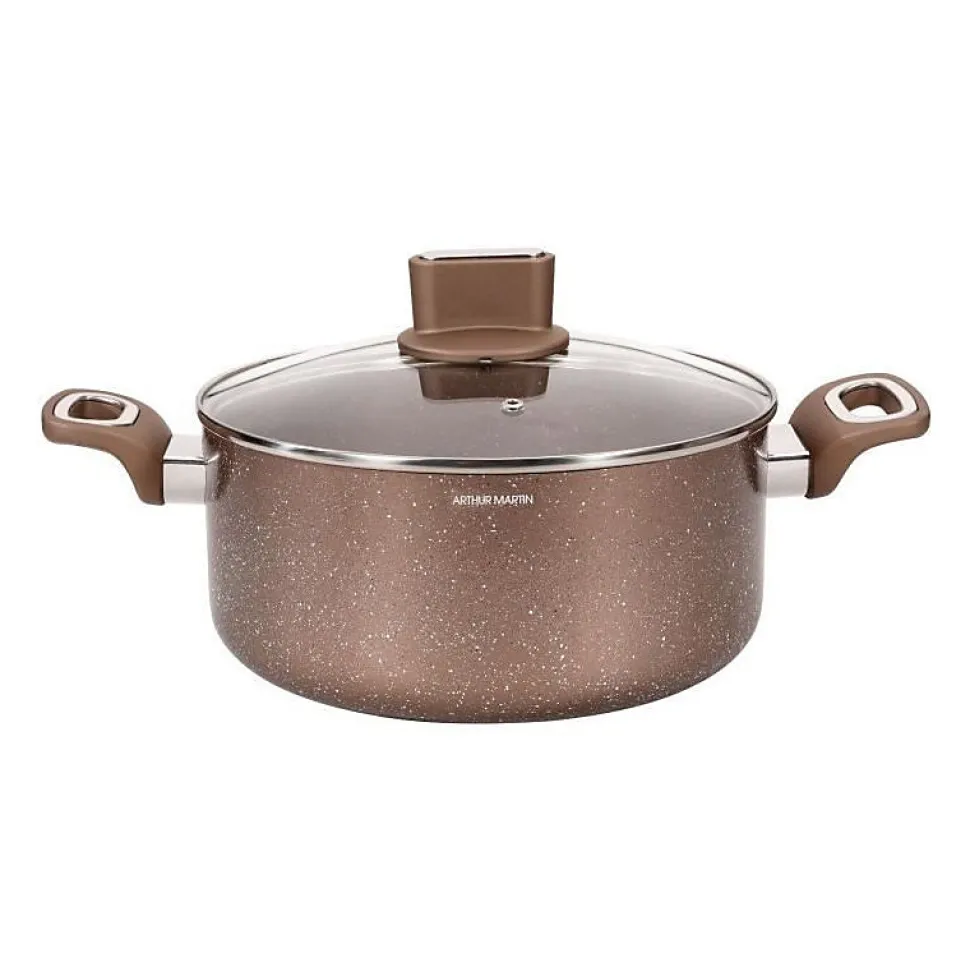 Marmite ARTHUR MARTIN AM5531 – 28 cm avec couvercle en verre : Marmite en aluminium avec revêtement antiadhérent et couvercle en verre. Compatible avec tous les feux, y compris l’induction. Parfait pour une cuisson uniforme et sans effort.