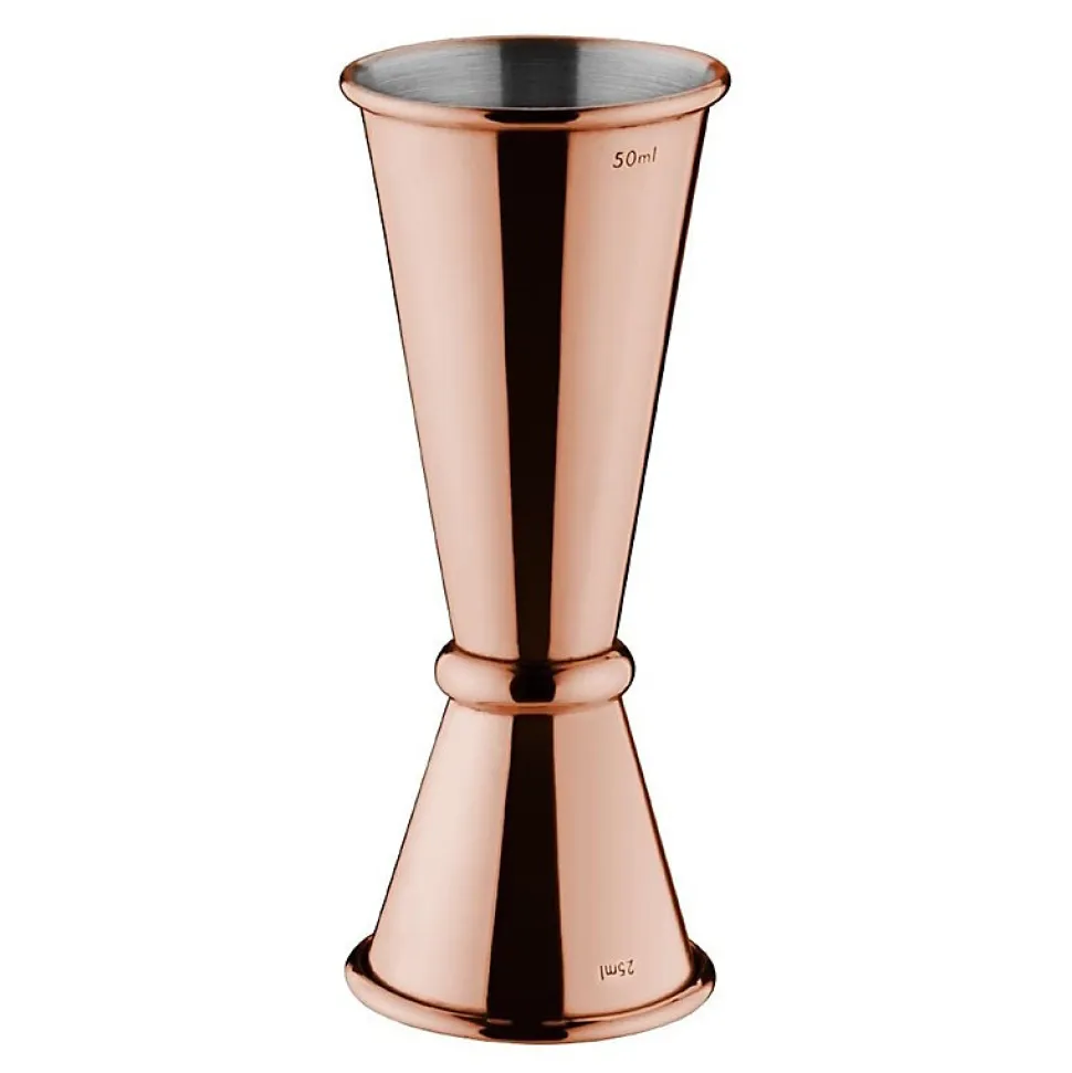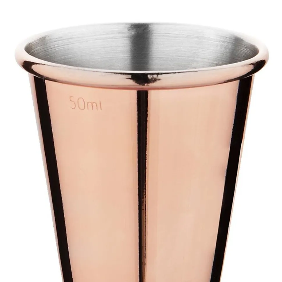 Mesure de bar conique en cuivre Chaque barman a besoin d’une mesure fiable. Cette mesure coloris cuivre offre une double mesure de 25 ou 50 ml pour servir alcools sur glace, cocktails ou boissons mélangées. Très simple à utiliser, cette mesure se pose et est clairement marquée. Cette mesure conique est recommandée pour les cocktails.Capacité: 50mLDimensions: 95(H) x 39(Ø) mmMatériel: CuivrePoids: 36 gDouble capacitéMesures de 25 ml et 50 mlStyle élégant