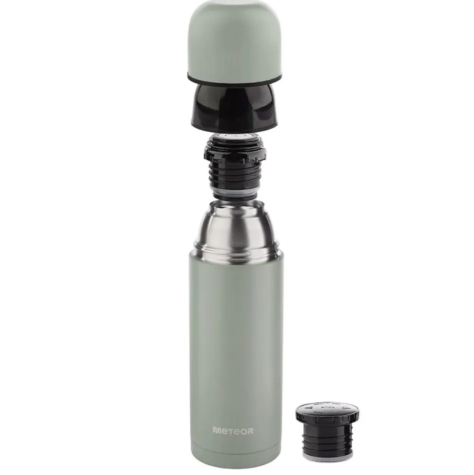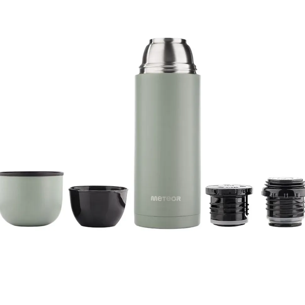 Material: 18/8 Stainless Steel. BPA Free, Food Safe, Lightweight, Non Toxic, Powder Coated. Button Opening, Cold Up To 24 Hours, Detachable Travel Cup, Double-Walled, Hot Up To 24 Hours, Leakproof, Multi-Functional Lid, Stopper, Useable Up To 95c, Vacuum Insulated, Wide Mouth. Design: Logo, Plain. Finish: Matte. Capacity: 1000ml.