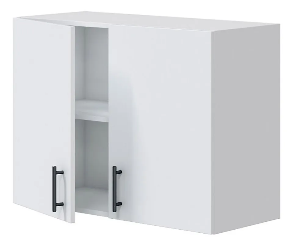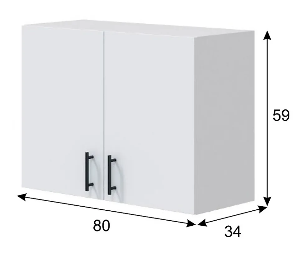 Ce meuble mural de cuisine en bois mélaminé est conçu pour être suspendu, idéal pour optimiser l’espace dans les petites cuisines ou compléter une composition murale. Son design épuré s’intègre parfaitement dans tout type d’intérieur, offrant un espace de rangement pratique tout en ajoutant une touche de sophistication. Doté de 2 portes battantes ,il comprend à l’intérieur 1 étagères qui divise le module en deux grands compartiments de 27 cm de haut qui vous permettra de garder toute votre vaisselle, épicerie ou accessoires de cuisine parfaitement organisé.A la fois facile à nettoyer et à entretenir. Livré en kit.Produit de fabrication Espagnol certifié PEFC.Caractéristiques principales:- Dimensions du meuble : hauteur 59 x longueur 80 x profondeur 34 cm- Poids maximum supporté par le meuble : 15 kg- Poids maximum supporté par l’étagère : 5 kg- Matière : bois mélaminé- Coloris : blanc brillant, blanc mat- Portes réversibles , Poignées noires en métal – Poids : 18,72 KG