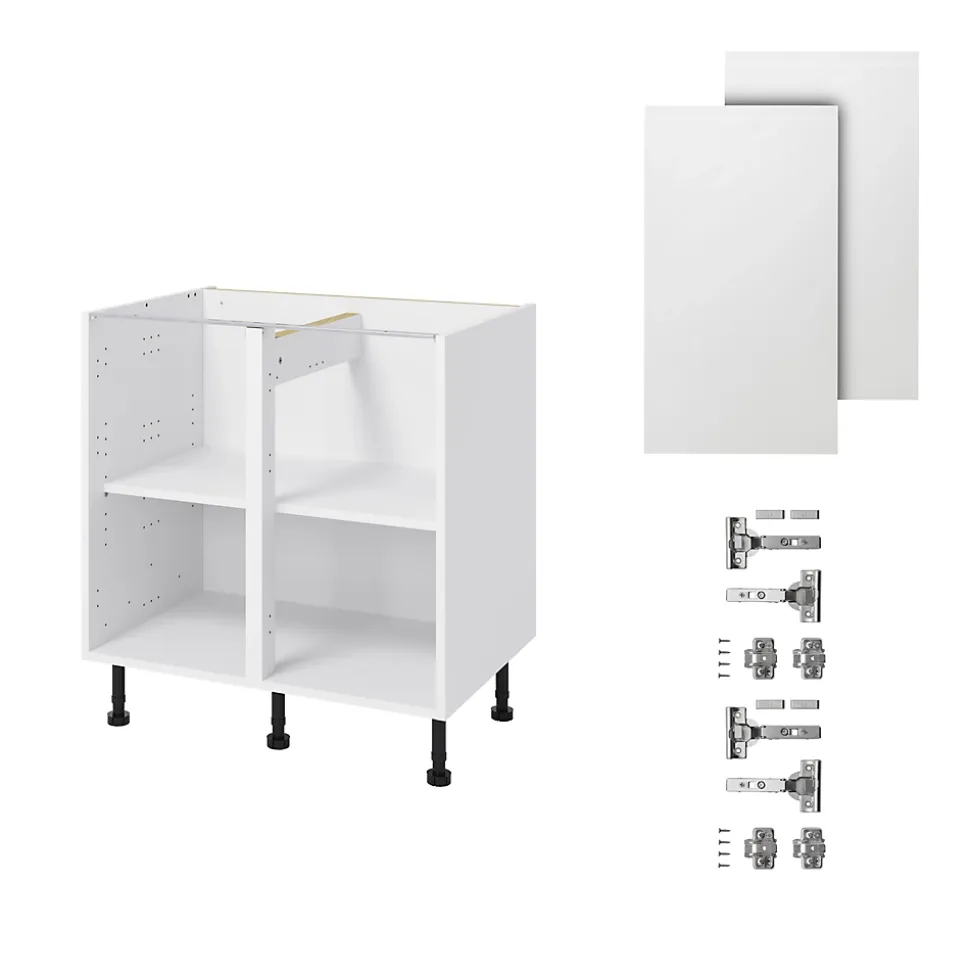 Meuble bas de cuisine avec 2 portes GoodHome Garcinia blanc brillant L. 80 x H. 72 cm