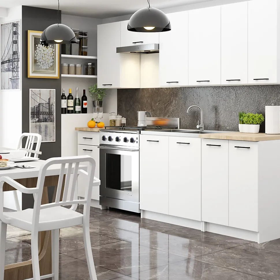 - FACILE À NETTOYER – Grâce à la surface lisse des façades et des caissons et aux poignées mates, l’armoire de cuisine Akord se nettoie sans effort.