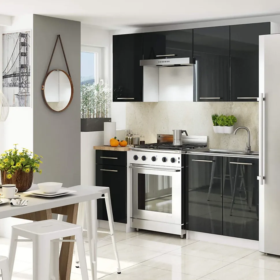 Le meuble suspendu de notre collection est un meuble de cuisine qui accueillera parfaitement la vaisselle, les courses et bien d’autres produits nécessaires dans cette pièce. Le meuble est l’un des éléments d’aménagement possible que vous pouvez concevoir selon vos propres préférences. Le meuble présenté satisfera certainement les amateurs d’intérieurs lumineux et modernes.Le meuble de cuisine suspendu est constitué de panneaux stratifiés et est destiné à l’auto-assemblage : il est livré à l’adresse indiquée par le client accompagné d’une notice de montage claire et lisible et d’un jeu d’accessoires certifiés nécessaires au montage.Contenu d’un paquet de meubles : 1 x meuble. 1 x accessoires requis pour l’assemblage. 1 x instructions d’auto-assemblage.Le meuble a un plateau, 1 porte, 2 étagères. Le produit est livré par coursier ou par transporteur dans un seul colis. Après avoir assemblé le meuble, si possible, veuillez fixer le meuble au mur pour des raisons de sécurité. blanc|graphite brillant, Finition avant : panneau laminé, épaisseur du panneau avant : 16 mm, matériau du corps : panneau laminé, épaisseur du panneau du corps : 16 mm, poignées : métal, largeur : 30 cm, hauteur : 72 cm, profondeur : 30 cm.