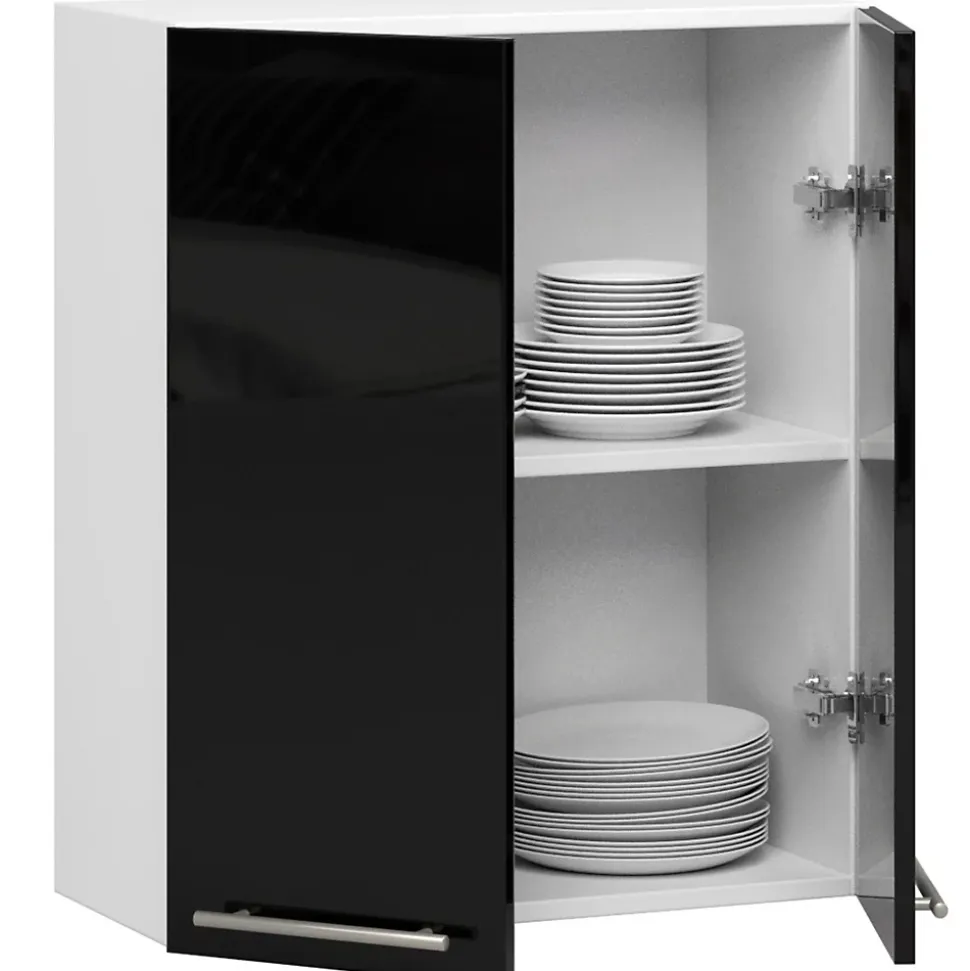 Le meuble suspendu de notre collection est un meuble de cuisine qui accueillera parfaitement la vaisselle, les courses et bien d’autres produits nécessaires dans cette pièce. Le meuble est un des éléments d’aménagement possible que vous pouvez concevoir selon vos propres préférences. Le meuble présenté satisfera à coup sûr les amateurs d’intérieurs lumineux et modernes. Le meuble de cuisine suspendu est constitué de panneaux stratifiés et est destiné à l’auto-assemblage : Il est livré à l’adresse indiquée par le client accompagné d’une notice de montage claire et lisible et d’un jeu d’accessoires certifiés nécessaires au montage. Contenu d’un paquet de meubles : 1 x meuble. 1 x accessoires requis pour l’assemblage. 1 x instructions d’auto-assemblage. Le meuble possède un plateau de table, 2 portes, 2 étagères. Le produit est livré par coursier ou par transporteur dans un seul colis. Après avoir assemblé le meuble, veuillez si possible fixer le meuble au mur pour des raisons de sécurité. blanc|noir brillant, Finition avant : panneau laminé, épaisseur du panneau avant : 16 mm, matériau du corps : panneau laminé, épaisseur du panneau du corps : 16 mm, poignées : métal, largeur : 60 cm, hauteur : 72 cm, profondeur : 30 cm.