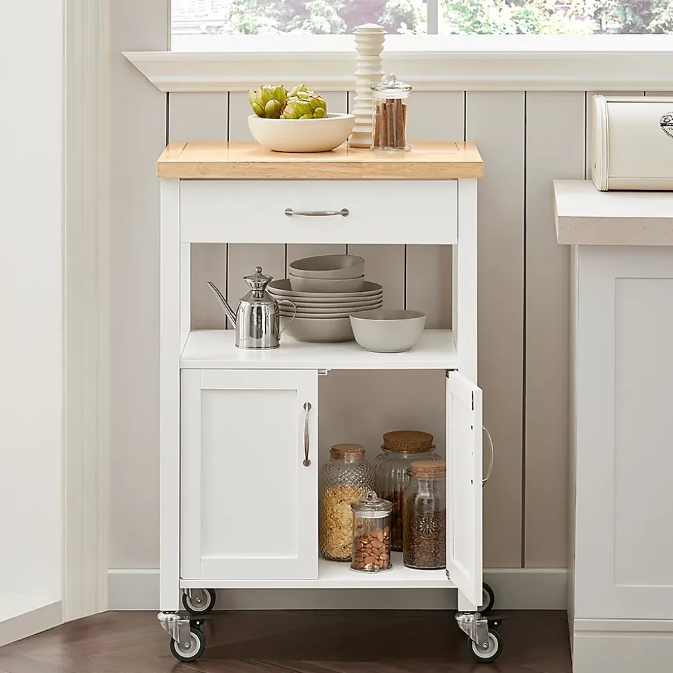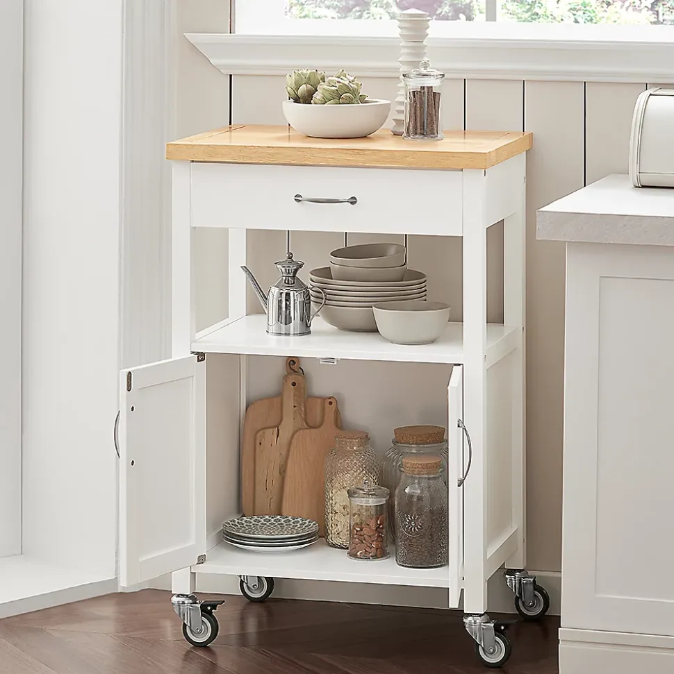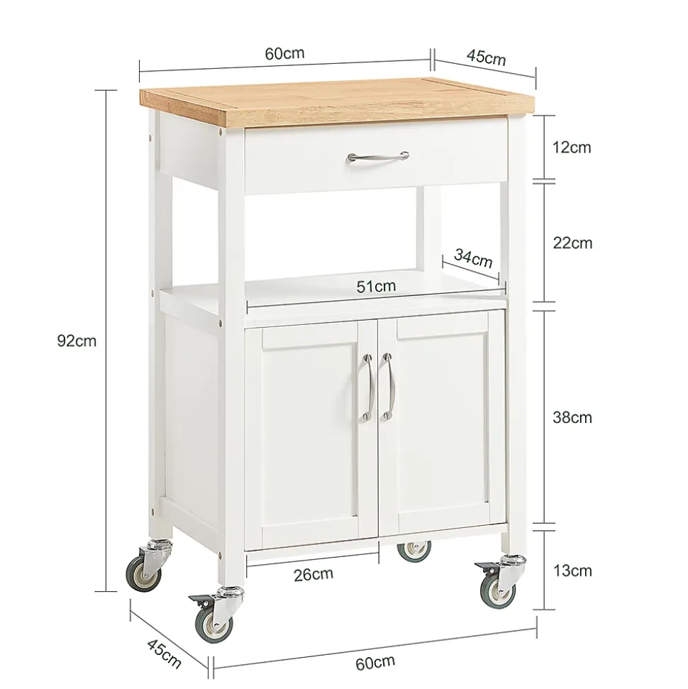SoBuy FKW22-WN Desserte de Cuisine Roulante, Meuble de Rangement à roulettesCe chariot de cuisine offre beaucoup d’espace de rangement pour divers ustensiles dans votre cuisine. Idéal pour mettre la cafetière, les tasses, l’imprimante etc. au bureau. Ce n’est pas seulement un joli accessoire décoratif pour votre cuisine, mais aussi une idée de servir directement les repas à vos invités. 1 grand plan de travail, 1 tiroir et 1 petite armoire avec 2 portes, dotées d’une fermeture magnétique. Qutre roulettes pivotent multidirectionnelles et deux d’entre elles sont équipées d’un frein parking. – Matériau: Plateau en Acier Inox, Bois et MDF laqué mat. – Dimensions desserte: L60cm x H90cm x P44,5cm. – Dimensions armoire : L51cm x H39cm x P39cm. – Poids: 20kg. Capacité de charge de chariot jusqu’à 30kg. Livraison : Desserte, Notice de montage détaillée. Cet article est livré sans éléments décoratifs des photos. Avec la Facture.
