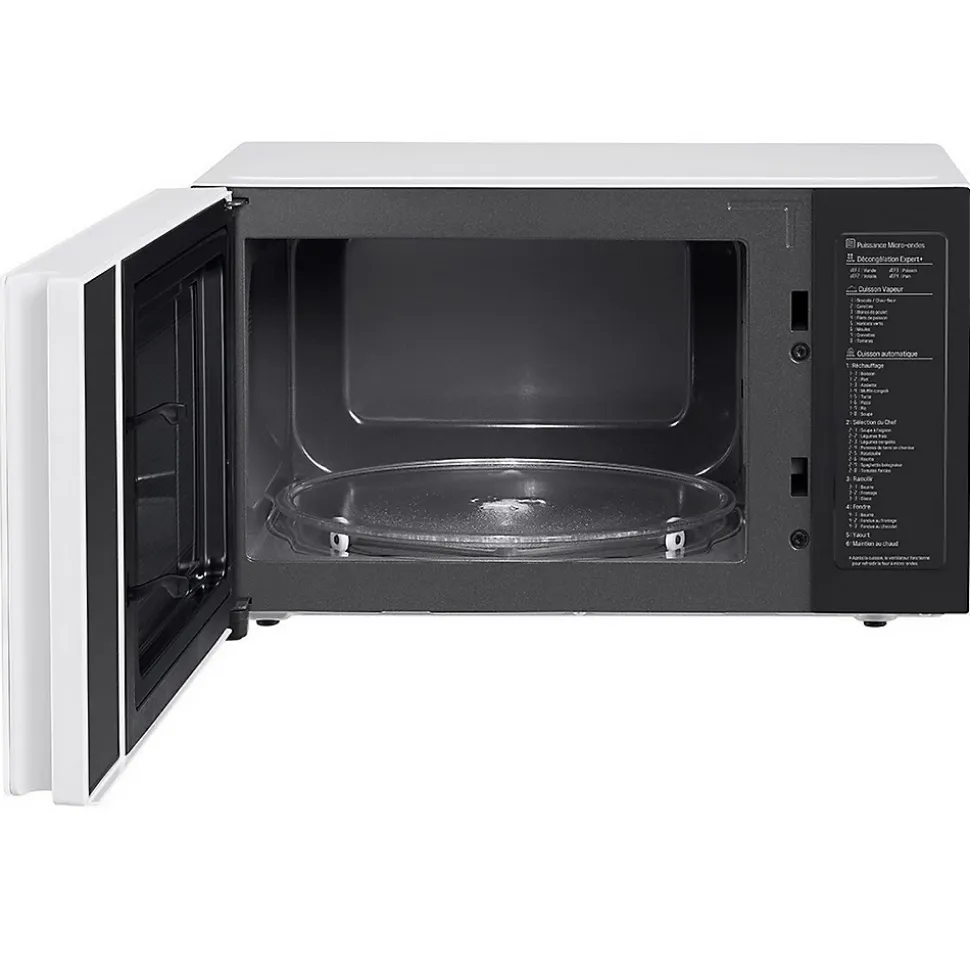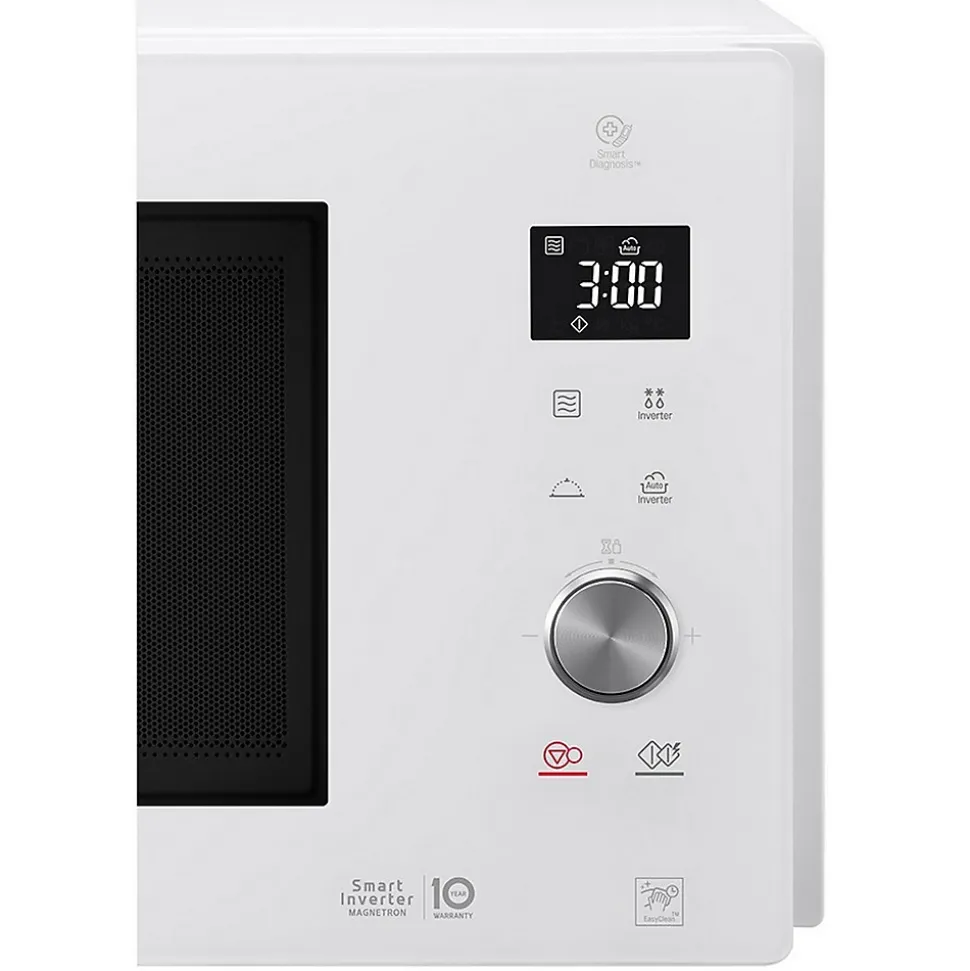 Micro-ondes combiné 32l 1200w blanc Lg – Micro-ondes combiné + vapeur LG MS3265DDH : Quand l’art s’invite dans votre cuisine ! Design unique et raffiné : Sobriété : design épuré, poignées intégrées. Élégance: design soigné, rétro éclairage blanc, Finitions glossy. Ergonomie: Bouton Push/Pull alu. Modernité: bandeau de commande tactile intégré à la porte pour un entretien facilité. Compacité : s’intègre facilement dans la cuisine. Cuisson Saine et Savoureuse : Saveurs et texture préservées. Cuisson vapeur avec programmes associés et accessoire cocotte vapeur fourni. Préparation de yaourts faits maison. Performance et Précision : Puissance micro-ondes exceptionnelle : 1200 W. Décongélation Expert + : efficace et douce. Réchauffage rapide. I-Wave : réchauffage et décongélation uniformes. Contrôle précis de la puissance pour de multiples fonctionnalités: maintien au chaud, yaourt, faire fondre en douceur… Praticité et Hygiène facile : Le revêtement de la Cavité de la gamme NeoChef est imperméable et antibactérien, empêchant les graisses de pénétrer et de s’incruster : la cavité se nettoie 2 fois plus facilement qu’une cavité peinte classique (Testé par Intertek). Plateau grande stabilité : 6 points d’appui. Le plateau tournant de 36 cm permet d’accueillir de grands plats. Visibilité optimale : Éclairage intérieur LED. – Type de produit : Micro-ondes combiné.Modèles : Micro-Ondes Combiné + Vapeur.Type de pose : Pose libre.Couleur : Blanc.Volume (en litres) : 32.Plateau tournant (diamètre en cm) : 36.Bouton : Oui intégré à la porte.Niveau de puissance : 5.Puissance micro-ondes (en W) : 1200.Décongélation automatique : Oui.Nature de la cavité : Easy Clean.Chaleur brassée : Non.Dimensions produit (HxLxP en cm) : 30.8 x 54.4 x 44.1.Poids net (en Kg) : 12.6.