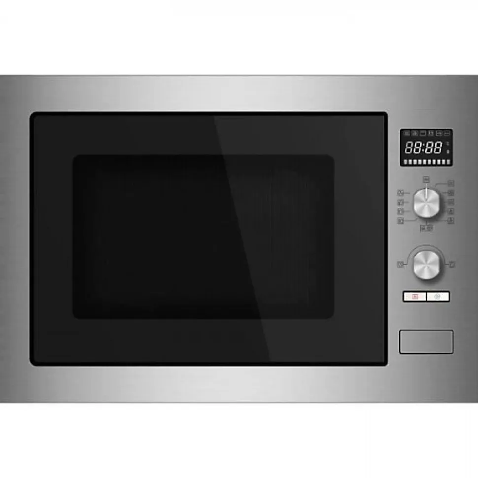 Micro ondes combiné encastrable 34L – 1000W – Affichage digital – Plateau tournant 31,5cm – Indicateur de temps – 9 niveaux de cuisson – 10 programmes automatiques – Puissance grill 1100W – Puissance chaleur tournante 1550W – Sécurité enfants – Coloris Inox – Garantie 2 ans
