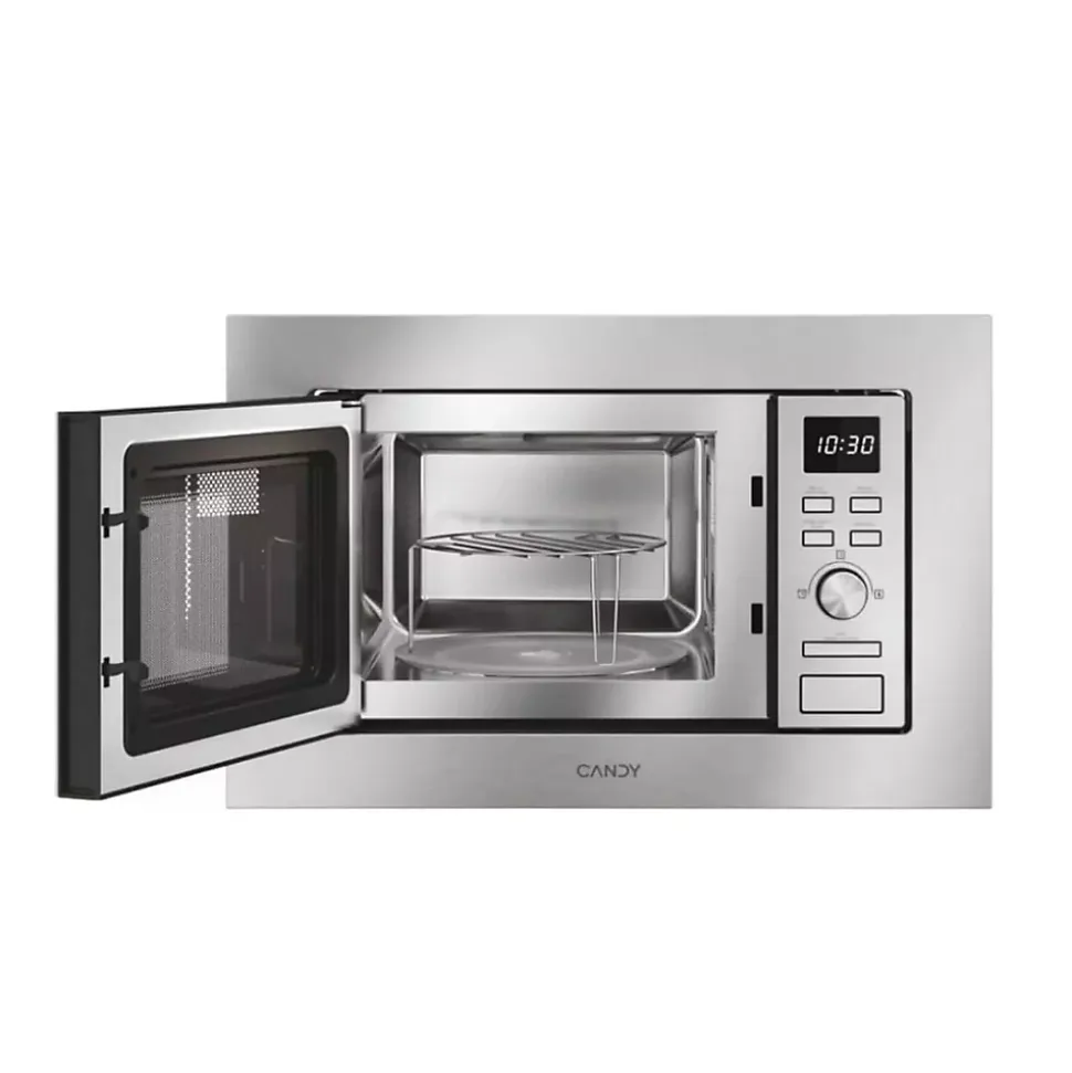 Micro-ondes gril encastrable 20l 800w inox Candy – Micro-ondes gril CA20FMW7NG de Candy.Candy Wave 600 encastrable en acier inoxydable : Conception en acier inoxydable, avec un cadre qui donne une touche d’élégance et d’attention aux détails.Cuisinez sans effort.Besoin d’aide en cuisine ? Choisissez l’un des 13 programmes de cuisson automatique, sélectionnez les aliments que vous souhaitez préparer et préparez votre repas sans effort. Désormais, tout le monde peut devenir un maître cuisinier.Simple et intuitif : Simplicité maximale pour des résultats parfaits. Grâce aux commandes Easy Touch, sélectionnez simplement le poids des aliments à cuire : le four à micro-ondes ajuste automatiquement le temps et la puissance de cuisson.Micro-ondes combiné : Les micro-ondes compacts encastrables innovants combinent un design italien avec une grande fonctionnalité.Fonction Décongélation : Grâce à la fonction Décongélation, décongelez les aliments rapidement et efficacement, soit en fonction du poids ou du temps. Cette fonction aide à préserver toute les qualités nutritionnelles et le goût des aliments.Sécurité enfant : La sécurité enfant empêche l’utilisation involontaire du microondes par les enfants, garantissant ainsi une sécurité absolue dans la cuisine. – Type de produit : Micro-ondes grill.Type d’installation : Encastrable.Volume (L) : 20.Puissance (W) : 800.Puissance gril (W) : 1000.Niveaux de puissance : 5.Nbre de programmes auto. : 8.Diam. plateau tournant (cm) : 24.5.Menus Auto : 8.Alimentation électrique : 230V / 50Hz.Ecran : Oui.Type d’affichage : LED blanches.Programmateur électronique : Oui.Ouverture de porte : Latérale charnières à gauche.Plateau tournant : Oui.Nature de la cavité : Inox.Type de commande(s) : Manettes.Connecté : Non.Décongélation : Oui.Supergril : Non.Alarme fin de cuisson :