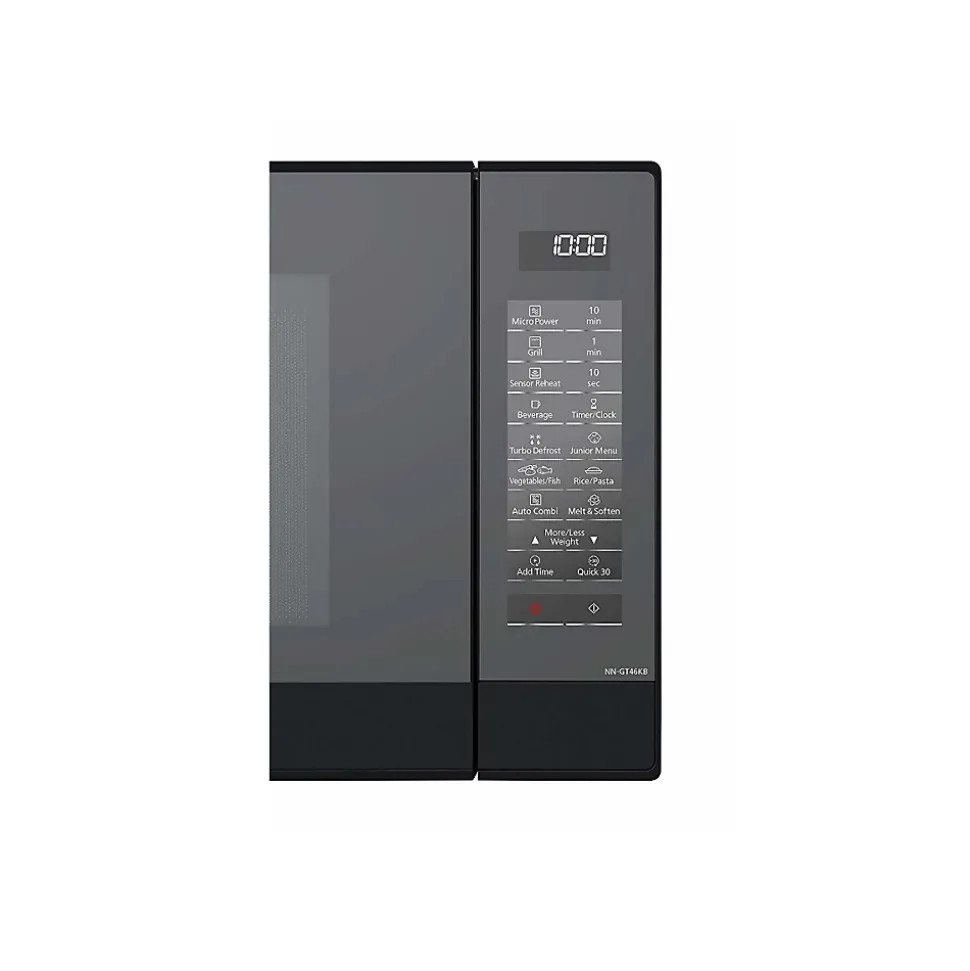 Micro-ondes grill 31l 1000w noir Panasonic – Four à micro-ondes Panasonic NN-GT46KBSUG avec grill. Four à micro-ondes spacieux de 31 L avec un gril à quartz de 1100 W pour des résultats plus croustillants. Il dispose d’un plateau tournant en verre de 34 cm. Utilisez des plats plus grands pour cuisiner pour toute la famille. Même les palais les plus exigeants vont se régaler avec le menu Junior. Avec ses 3 programmes automatiques (purée de légumes, compotes de fruits, porridge), la préparation des repas est un jeu d’enfant. Le gril à quartz de 1100 W gratine vos recettes préférées telles que les pizzas, les quiches et les légumes. Plusieurs menus auto gril permettent d’obtenir des résultats croustillants au quotidien. – Type de produit : Micro-ondes grill.Capacité du four : 31 L.Alimentation : 230 V / 50 Hz.Micro-ondes : 1 000 W.Puissance de grill : 1100 W.Charge connectée : 2100 W.Tension d’entrée AC : 230 V.Fréquence d’entrée AC : 50 Hz.Minuterie, départ différé : Oui.Écran integré : Oui.Type d’écran : LCD.Lumière intérieure : Oui.Type de minuterie : Numérique.Nombre de niveaux de puissance : 7.Nombre de programme : 24.Niveaux de puissance du gril : 3 (High, Med, Low).Type d’ouverture de porte : Bouton.Type de gril : Grill à quartz.aille du plateau tournant : 34 cm.Placement de l’appareil : Comptoir.Grill : Oui.Platine : Oui.Minuteur : Oui.Fonction horloge : Oui.Technologie de convertisseur : Oui.Type d’horloge : Électronique.Mode horloge : 24h.Cuisson vapeur : Non.Rotisserie : Non.Emplacement charnière de porte : Gauche.Couleur : noire.Dimensions extérieures (H x L x P) : 310 x 525 x 401 mm.Dimensions du four (H x L x P) : 247 x 359 x 362 mm.Poids net : 12,8 kg.