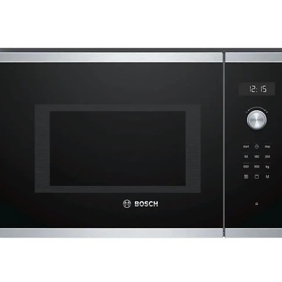Grill encastrable inox-25 L-900 W-Grill 1200 W-Diamètre plateau 31,5 cm-5 Puissances micro-ondes-Programmateur 99 min à affichage digital-Horloge électronique-Bouton à prise centrale, Boutons escamotables, commandes par touchControl-Cavité Acier inox-Charnières à gauche-8 programmes automatiques-Fonction mémoire-Eclairage LED