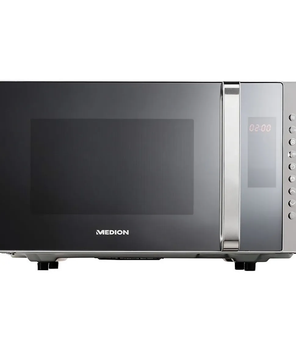Micro-ondes combiné MEDION MD17495 avec 23L, 800W micro-ondes, grill infrarouge 1200W, convection 1200W, 10 programmes automatiques, éclairage LED, verrouillage enfant, design inox élégant.