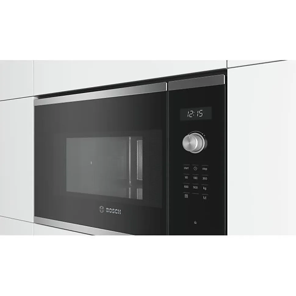 Le micro-ondes encastrable BOSCH BFL554MS1F est un appareil monofonction haut de gamme combinant design moderne et performances culinaires avancées. Il dispose de la technologie AutoPilot 7 avec 7 programmes automatiques pour une cuisson parfaite, d’un nettoyage hydrolytique simple et d’une interface tactile LED intuitive. Sa capacité de 25 litres avec un plateau tournant de 31,5 cm et ses 5 niveaux de puissance allant de 90W à 900W permettent une grande polyvalence en cuisine. Son habillage en inox brossé s’intègre parfaitement aux cuisines contemporaines et sa sécurité enfant offre une tranquillité d’utilisation.