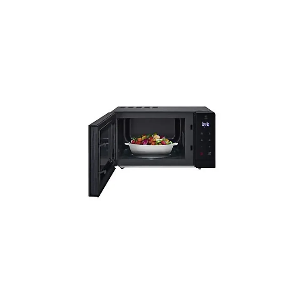 Micro-ondes solo 30l 1250w noir Lg – Micro-ondes solo NeoChef MS3032JAS de LgRapide et facile à nettoyerLe revêtement de la cavité EasyClean est imperméable, empêchant les graisses de pénétrer et de s’incruster : la cavité se nettoie plus facilement qu’une cavité peinte classique et résiste mieux dans le temps car les rayures sont évitées. Ce revêtement est aussi hygiénique avec des vertus antibactériennes.Un micro-ondes au design épuréLe micro-ondes NéoChef redéfinit l’esthétique de votre cuisine avec son design épuré, sa commande tactile et une poignée intégrée, offrant une allure fonctionnelle qui allie modérnité et convivialité. L’optimisation de l’espace de cuisson garanti une performance maximale tout en minimisant l’encombrement, faisant du NéoChef un indispensable dans votre cuisine.Simple, rapide et précisExplorez la facilité d’utilisation avec nos micro-ondes LG NeoChef, dotés d’une commande tactile intuitive. Associée à un éclairage intérieur puissant en LED blanche et à une ouverture facile grâce à une poignée intégrée, cette expérience culinaire devient aussi simple que toucher, chauffer et savourer.Taille compacte, capacité supérieureLa nouvelle génération de four à micro-ondes LG NeoChef est plus compacte mais avec une capacité intérieure optimisée. Sa taille lui permet de s’intégrer même dans les plus petites cuisines mais offre suffisamment d’espace pour des plats de grande taille. – Type de produit : Micro-ondes monofonction.Gamme : NeoChef.Type de modèle : Solo.Type : Classique.Capacité : 30 L.Puissance restituée : 850 W.Puissance absorbée : 1250 W.Plateau tournant : 30.5cm.Bandeau de commande : Commande tactile.Rétroéclairage : LED blanche.Type d’ouverture : Bouton poussoir.Nature de la cavité : Revêtement EasyClean.Éclairage intérieur : LED blanche lumineuse.Ecran : Oui.Eco On : Oui.Quick Start : Oui.Touche Plus ou Moins :