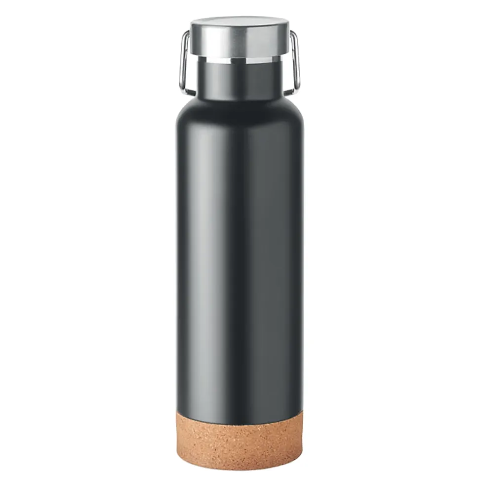 Matière : liège, acier inoxydable recyclé. Hauteur : 24cm. Longueur : 7cm. Largeur : 7cm. Poignée de transport, double paroi, étanche, couvercle vissé, isolé sous vide. Design : Plain. Capacité : 500ml. Emballage : Boîte. Développement durable : Amfori, BSCI. Conforme à la norme de sécurité : EC 1907/2006, conforme à REACH.