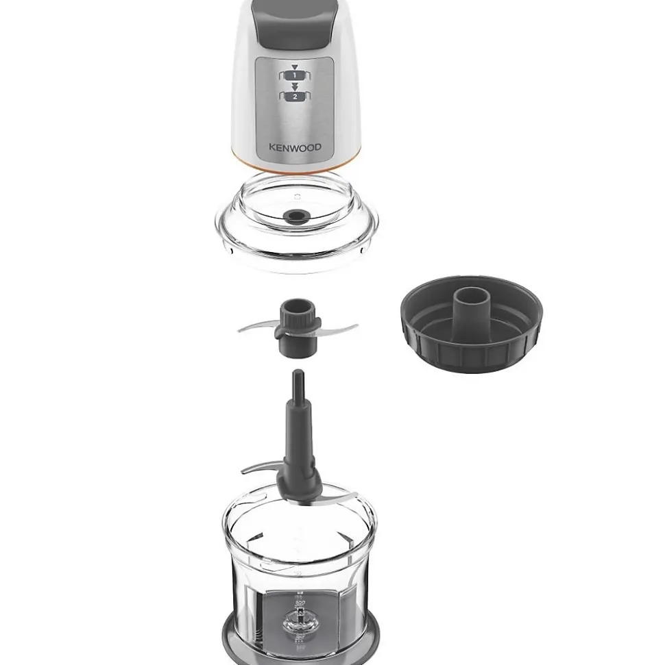 Mini-hachoir 0,5l 500w blanc Kenwood – Mini-hachoir EASY CHOP CHP61.100WH de Kenwood. Doté d’une capacité totale de 0,8 L et de 4 lames en acier inoxydable il mixe et hache de façon rapide et précise. Ajustez la vitesse d’une simple pression sur le couvercle pour des résultats adaptés à chaque préparation. Réussissez à coup sûr, vos mayonnaise grâce à l’accessoire fourni. Enfin, cuisinez en toute sécurité grâce à la base antidérapante et au système de sécurité intégré au couvercle. Facile à nettoyer le bol et les lames passent au lave-vaisselle. 4 lames en acier inoxydable : Les 4 lames en acier inoxydable, positionnées à des hauteurs différentes dans le bol offrent une qualité de coupe exceptionnelle. Hachez des morceaux de viande, des légumes, mixez des sauces et pilez de la glace en toute simplicité. Pratique et simple d’utilisation ! Doté de deux vitesses, ajustez la puissance en appuyant sur le dessus du couvercle pour actionner l’appareil. Grâce à la base antidérapante sous le bol, le EASY CHOP est stable, pour une utilisation en toute sécurité. Accessoire mayonnaise : Pour une utilisation encore plus variée, cet accessoire permet de réussir des mayonnaises faites maison en toute simplicité. – Type de hâchoir : Mini-hachoir.Puissance max. (en W) : 500.Nombre de vitesses : 2.Matière de l’appareil : Plastique.Capacité maxi. : 0,8 L.Capacité utile : 0,5 L.Nombre de lames : 4.Interrupteur (marche / arrêt) : Non.Touche (marche / arrière) : Non.Sécurité(s) : oui intérgrée au couvercle.Accessoire(s) inclu(s) : Accessoire mayonnaise, Spatule.Rangement du cordon : Non.Couleur : Blanc.Dimensions produit (Lxlxh en cm) : 13,1 x 13,1 x 26,3.Poids (en kg) : 1,16.