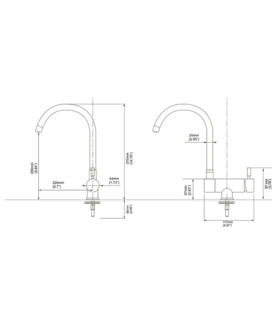 Voie pour l’eau filtrée Robinet mitigeur chromé avec troisième voie. Il est compatible avec tous les systèmes de filtration d’eau : filtration, osmose etc. Habituellement, il faut percer un trou pour installer un petit robinet supplémentaire. Ce n’est pas le cas avec ce mitigeur : eau chaude, eau froide et eau filtrée sont fournies par un seul robinet. Robinet rabattable Le modèle de robinet RAVENNA a la particularité de se rabattre pour permettre l’ouverture d’une fenêtre.Il est aussi orientable à 360°. Dimensions du robinet mitigeur rabattable 3 voies – Hauteur totale : 375 mm- Hauteur base mousseur : 250 mm- Largeur du corps de robinet : 177 mm- Diamètre de la base : 54 mm- Diamètre du trou de perçage du plan de travail : 35 mm Entretien Pression réseau maximum 3 bars.Utiliser uniquement un chiffon doux avec de l’eau et du savon. Raccordement Le robinet mitigeur 3 voies rabattable RAVENNA est fourni avec : – Pour l’eau du réseau : 2 flexibles avec raccord 3/8 » (et adaptateurs 3/8 » – 1/2 » pour installation sur arrivée d’eau en 1/2 »).- Pour l’eau filtrée : le raccord permettant de brancher un tuyau en 1/4 » ou en 6 mm, ainsi qu’un adaptateur permettant de brancher un flexible 3/8 ». Il possible d’utiliser ce robinet comme un mitigeur simple. Dans ce cas, ne reliez pas la 3ème voie. Les mitigeurs sont sensibles à l’entartrage, ce qui peut provoquer des fuites ou des malfonctionnements. Si vous habitez dans une région d’eau calcaire, il faut avoir un traitement antitartre dans l’habitation.