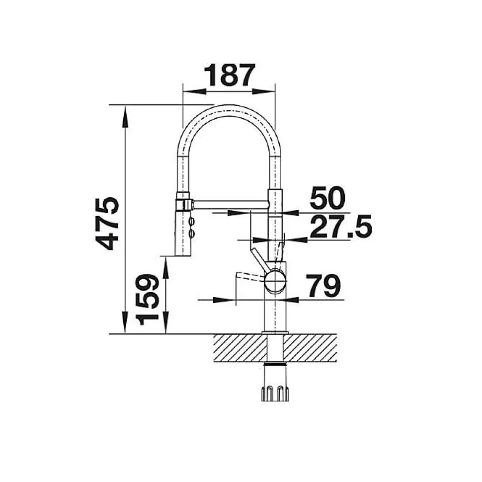 Mitigeur Blanco 525792 avec douchette intégrée, design élégant, flexible polymères de 450 mm, bec orientable à 360°, finition PVD ultra résistante, clapet anti-retour conforme EN 1717, régulateur de jet breveté pour une durabilité optimale et une expérience utilisateur confortable.