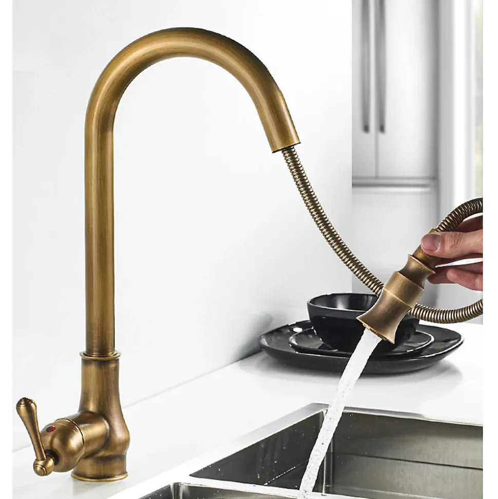 Ce mitigeur d’évier de cuisine en laiton doré apporte une touche élégante et chaleureuse à votre plan de travail tout en offrant un grand confort d’utilisation au quotidien. Son bec haut en forme de col de cygne permet de remplir facilement casseroles, faitouts et vases, même dans un évier profond ou double bac. Avec une hauteur totale d’environ 440 mm et une hauteur sous bec d’environ 240 mm, ce robinet offre un large espace de manœuvre pour la vaisselle volumineuse. La portée de bec d’environ 245 mm assure un jet parfaitement centré dans la cuve, limitant les éclaboussures. Le bout du bec est orientable sur 60–80 mm pour diriger précisément le jet d’eau là où vous en avez besoin, pratique pour rincer fruits, légumes ou les parois de l’évier.Le corps et le bec sont entièrement réalisés en laiton massif, matériau reconnu pour sa résistance à la corrosion et sa longévité en milieu humide.Une simple éponge douce suffit pour conserver l’éclat du mitigeur sans produits agressifs. Le mitigeur est compatible avec les systèmes d’eau chaude classiques (chaudière, cumulus, chauffe-eau instantané) et fonctionne de manière optimale avec une pression entre 1 et 5 bars.