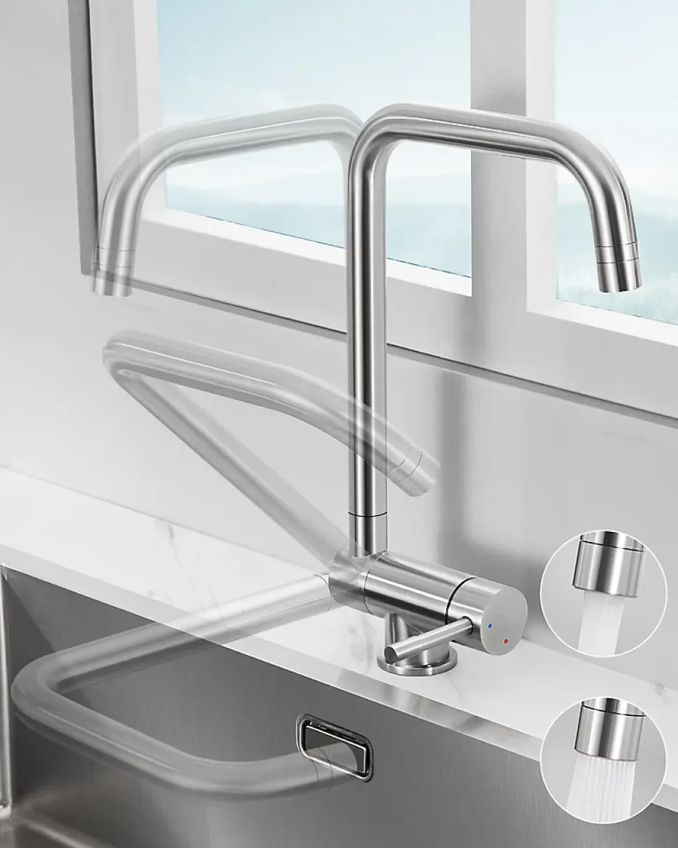 Mitigeur cuisine rabattable , CECIPA MAX robinet cuisine rabattable avec 2 Jets, robinetterie pliable devant fenêtre