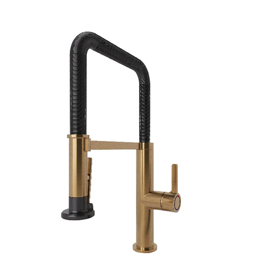 Mitigeur de cuisine avec douchette noir et laiton GoodHome Kamut