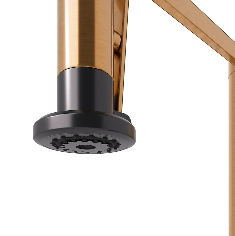 Simple et contemporain, ce robinet repousse les limites grâce à des fonctionnalités pratiques sans compromettre le design. La douchette avec ressort pratique contraste magnifiquement avec la base et la manette laiton satiné, pour une finition remarquable