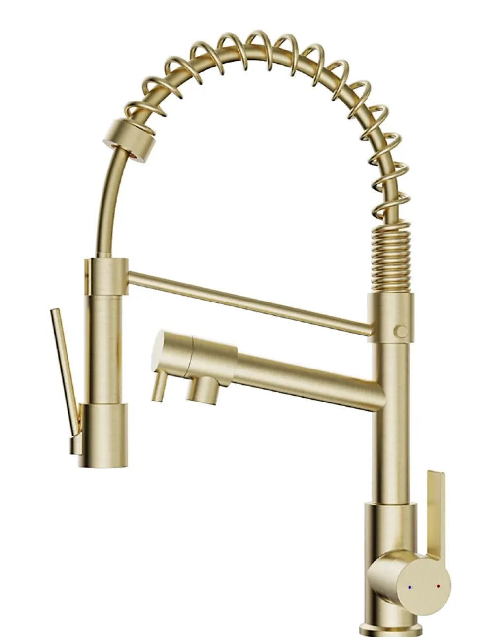 Mitigeur de cuisine doré avec douchette Essebagno Hotto