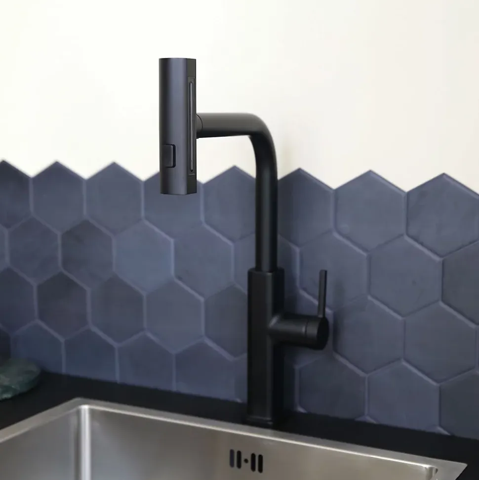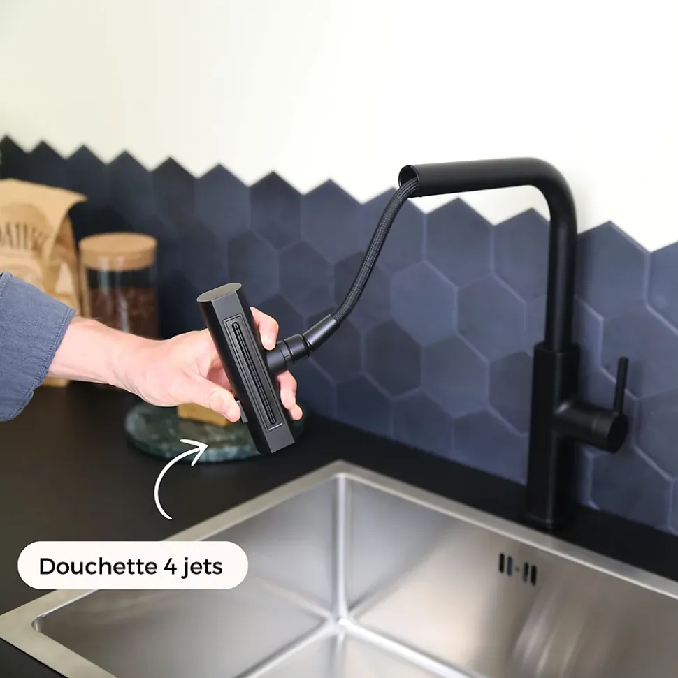 Avec sa douchette extractible 4 jets vous aurez toujours le bon jets nécessaire (laver, rincer ,nettoyer, remplir…). De plus, sa finition noir mat amènera de l’élégance dans votre cuisine