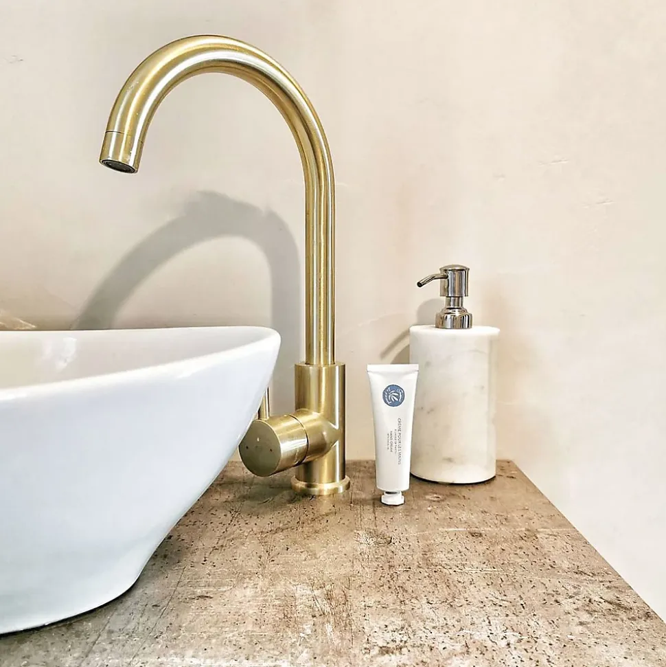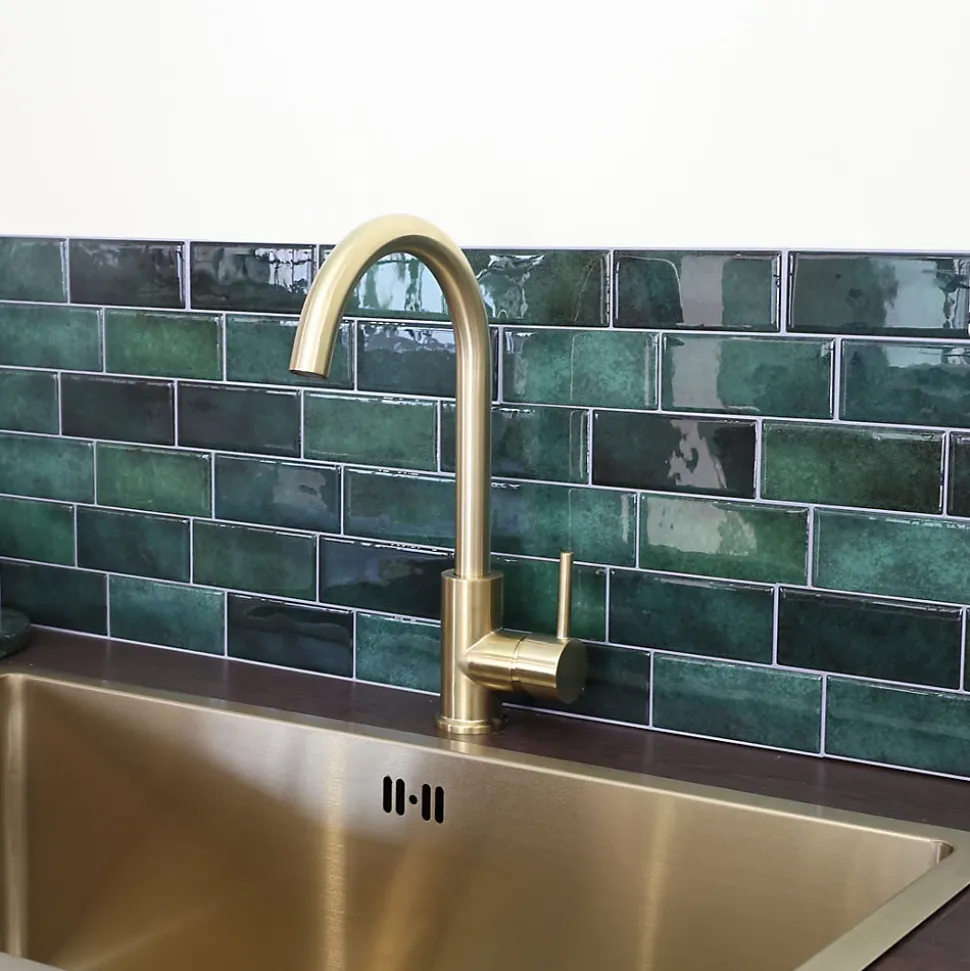 Succombez à la tendance rétro avec le mitigeur de cuisine Kiwo couleur or brossé ! Ce robinet en laiton design de par sa forme, s’inscrit totalement dans le look vintage avec sa couleur cuivrée ! DESIGN ET QUALITE – Couleur : Or brossé – Produit : Robinet mitigeur évier – Corps du robinet : Rond en laiton – Poignée : En métal – Bec : Pivotant – Aérateur anticalcaire : Oui (limite la production de calcaire) – Aérateur économie d’eau : Oui (mélange optimal d’air et d’eau) – Mécanisme : Cartouche à disques céramique 35 mm – Kit de fixation : Système ESSEFIX (fixation facile sans outil) – Alimentation à l’eau : Lyres tressées inox 40 cm inclus DIMENSIONS – Hauteur totale : 335mm – Hauteur sous bec : 240mm – Largeur sortie d’eau/axe du corps : 180mm – Diamètre embase : 50mm NORMES : – Certification ACS : Accréditation de Conformité Sanitaire. GARANTIE : – Corps garanti 5 ans. – Pièces d’usure (poignée, cartouche, flexibles…) garanties 2 ans. Conseils d’utilisation et d’installation : – Avant de procéder au montage, nous vous conseillons de purger soigneusement les tuyauteries d’eau chaude et d’eau froide pour éviter que les saletés et résidus puissent compromettre le bon fonctionnement de la robinetterie. – Après avoir fermé l’alimentation d’eau principale, démonter l’ancienne robinetterie. – Nettoyez soigneusement le filetage des tubes d’alimentation d’eau principale. – Installer le mitigeur de cuisine dans un trou de 35 mm dans un évier ou plan de travail. – Vérifiez que la longueur du bec est compatible avec votre évier (voir dessin technique) Conseils d’entretien : – Pour garder votre robinet le plus longtemps possible, l’idéal est de le nettoyer tous les jours avec un chiffon humide non abrasif ou une microfibre, terminer en essuyant avec une microfibre ou un chiffon sec. – Ne jamais utiliser de solvants, d’éponges métalliques, d’eau de javel, d’acides, de détergents puissants, de produits nettoyants chimiques agressifs ou de solutions de nettoyage à base de solva