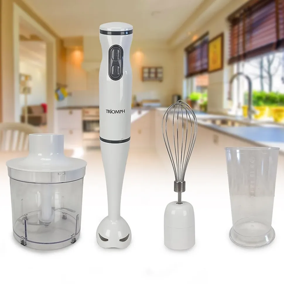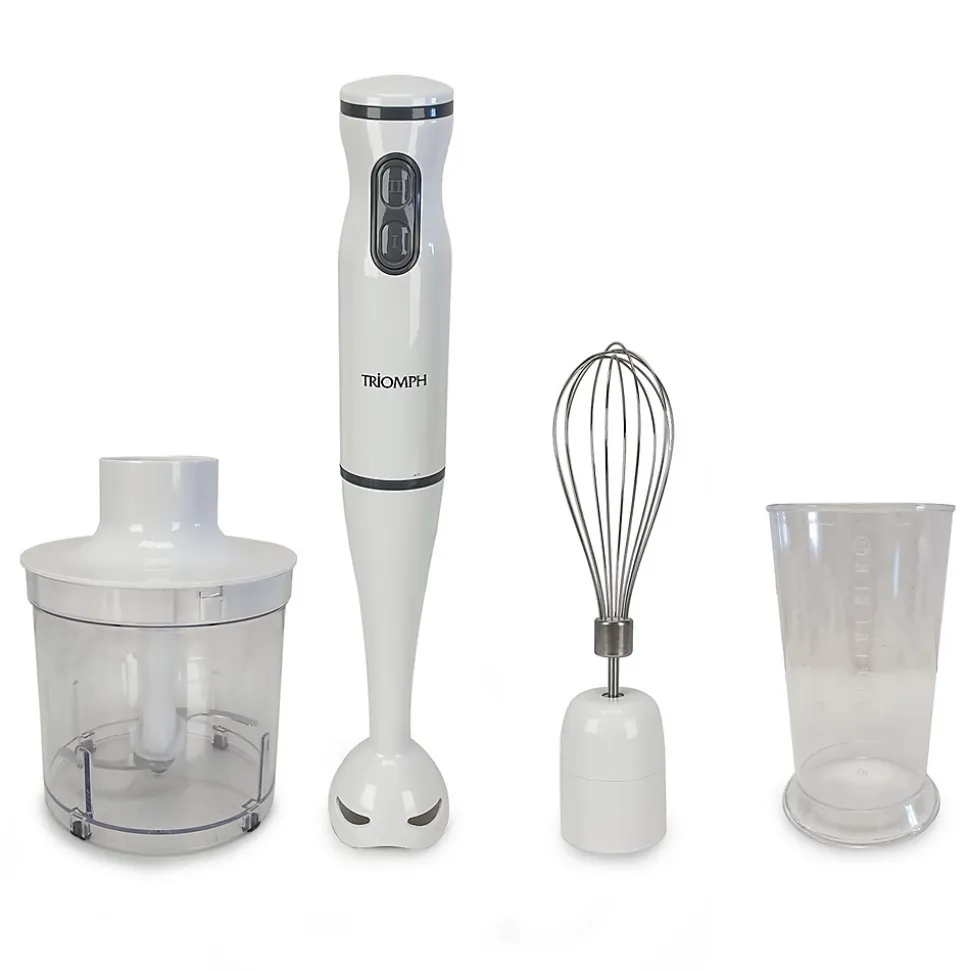 Ce mixeur à main 3 en 1 est livré avec 3 accessoires afin de pouvoir préparer vos plats à l’aide d’un seul appareil. Points forts : -Mixeur à main multifonctions – 3 EN 1 -Poignée Ergonomique antidérapante -3 Fonctions : •Hachoir : le bol hachoir avec couvercle vous permet de hacher tous types d’ingrédients : jambon. viande. oignons….. •Fouet : il monte les blancs d’oeufs en neige et vous permettra de réaliser de délicieuses sauces •Mixeur : pour réaliser de bonnes soupes. du guacamole… -Facile à monter et à nettoyer (passe au lave vaisselle) Caractéristiques techniques : -Capacité : •Bol Hachoir (avec couvercle) : 500 ml •Bol mesureur : 600 ml -Puissance : 400W – 2 vitesses…