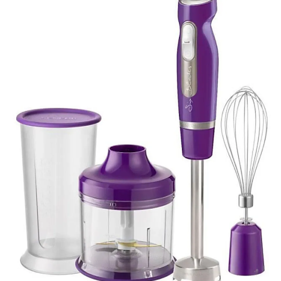 Mixeur plongeant Sencor SHB 4465VT-EUE3 — 1000 W et 25 vitesses pour un mixage précis. Pied et tige en inox avec 6 lames pour mixer, fouetter et hacher ; livré avec bécher doseur 700 ml, hachoir 500 ml et fouet. Corps ergonomique, connexion modulaire détachable et finition violette élégante. Garantie moteur 6 ans.