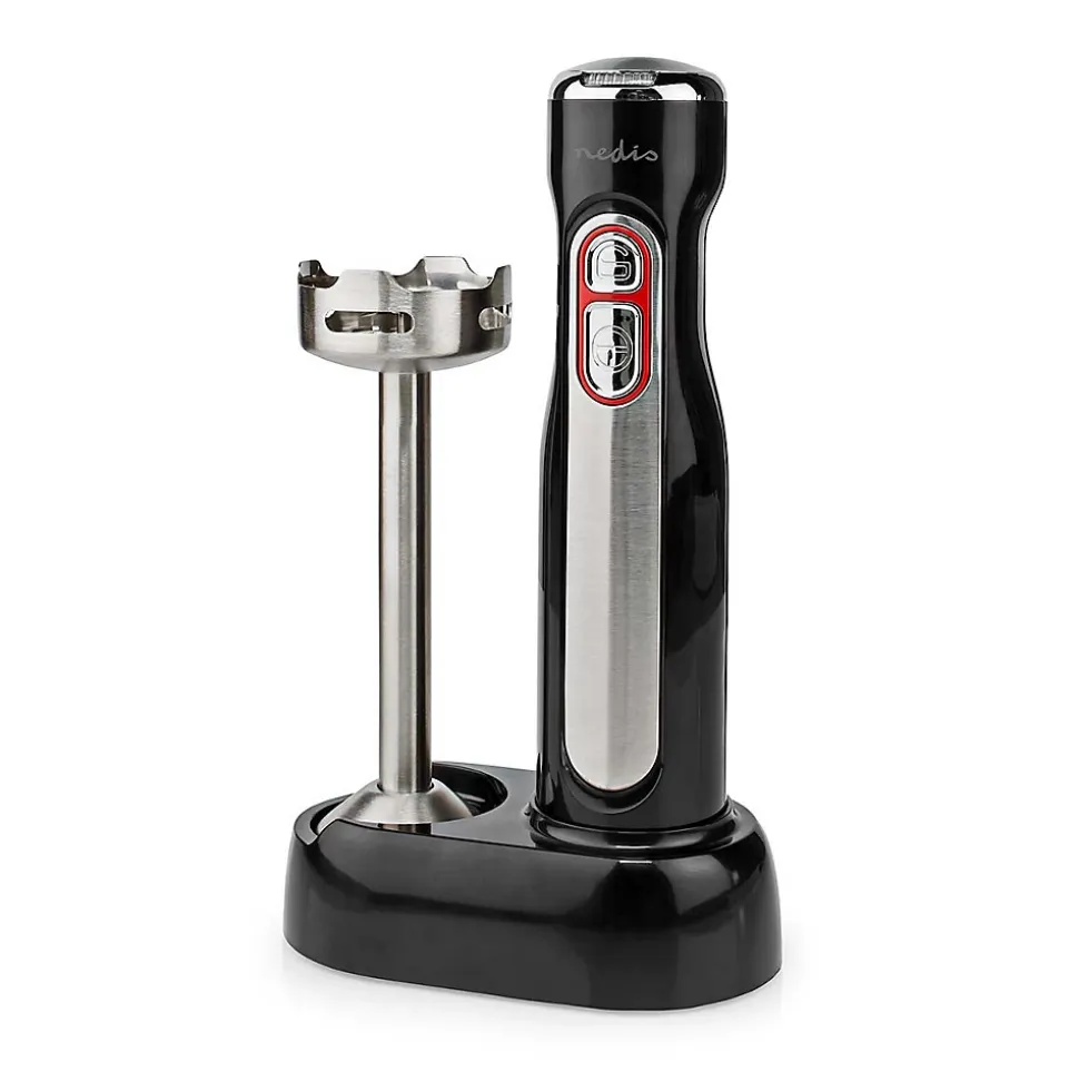 Description du produit :Ce mixeur plongeant sans fil Nedis vous offre une liberté de mouvement maximale. Idéal pour préparer soupes, milkshakes, sauces et autres recettes sans être gêné par un cordon d’alimentation. De conception élégante et légère, il est sans fil et facile à utiliser d’une seule main. La version à vitesse unique offre une vitesse de pointe de 13 000 tr/min, ce qui garantit des résultats lisses et homogènes.La batterie lithium-ion rechargeable offre une autonomie et des performances optimales, et se charge en seulement 2 heures. Un voyant LED à code couleur indique quand il est temps d’effectuer une recharge.Le bras de mélange en acier inoxydable est également assez long pour les plats profonds. Fourni en pack complet avec un support pour ranger le mixeur.Caractéristiques : Mixeur plongeant sans fil pour soupes, sauces et smoothies Mélange efficace partout Se charge pendant 2 heures et fonctionne pendant 13 minutes Conception légère et ergonomique à une seule vitesse Verrouillage et bouton marche/arrêt Indicateur d’état à LED de couleur Bras et lames en acier inoxydableContenu de l’emballage :Mixeur PlongeantSupportAdaptateurManuel