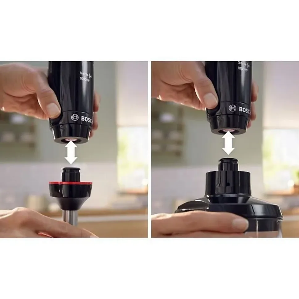 Le mixeur plongeant ErgoMaster de BOSCH est équipé d’un moteur puissant de 1000 W et de 4 lames aiguisées QuattroBlade pour une efficacité optimale. Son revetement soft-touch et son levier de vitesses a gâchette avec turbo en font un outil facile et agréable a utiliser. Il est livré avec un bol mélangeur, un mini hachoir et dispose d’un engrenage céramique.