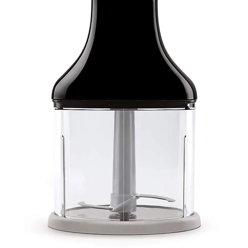 Mixeur plongeant multifonction 700w noir Smeg – Suivez vos inspirations culinaires avec ce mixeur plongeant HBF03 de Smeg.?Doté d’une puissance de 700 Watts, il dispose de plusieurs vitesses dont une vitesse turbo parfaite pour les préparations nécessitant de la puissance. En effet, avec sa fonction turbo, il atteint jusqu’à 14850 tours/minute.Complet, ce produit est accompagné d’une carafe graduée de 1.4 litre, d’un hachoir, le fouet à fil. Grâce à eux, vous pouvez mixer, hacher, fouetter et émulsionner vos ingrédients.Son design rappelant les années 50 est idéal pour apporter une touche de vintage à votre cuisine.Il est équipé d’une poignée ergonomique et antidérapante qui vous garantit un excellent confort d’utilisation et un contrôle parfait de l’appareil. – Type de produit : Mixeur plongeant.Esthétique Années 50.Catégorie : Préparation Culinaire.Puissance : 700 W.Capacité de la carafe graduée : 1.4 l.Maximum de tours / min 14850 giri/min.Minimum de tours / min 8150 giri/min.Tension : 220-240 V.Fréquence : 50 / 60 Hz.Vitesse variable : Oui.Fonction Turbo : Oui.Type de commandes : Touches, bague de support.Touche on/off : Oui.Hachoir : Oui.Fouet à fils : Oui.Livré avec bol : Oui.Nombre de vitesses : Variable.Poignée antidérapante : Oui.Range-cordon intégré : Oui.Matériau des touches : Plastique.Matériau de l’anneau de touches : Plastique.Matériau du corps : Plastique.Matériau de la carafe graduée : Tritan Renew.Matériau du pied : Inox.Matériau des lames : Inox.Matériau de la poignée antidérapante : Plastique.Longueur du câble d’alimentation : 1.5 m.Lavable au lavevaisselle : Récipient, lames.Finition : Brillant.Rechargeable : Non.Couleur de l’anneau des touches : Chromé brillant.Couleur du câble : Gris.Couleur de la poignée antidérapante : Gris.Couleur des touches :
