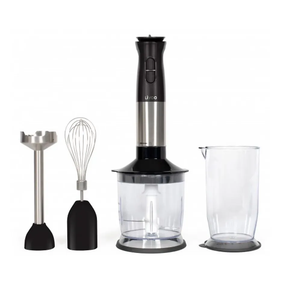 Mixeur plongeant multifonction 800w noir Livoo – Set mixeur plongeant de Livoo DOP246 doté d’une grande puissance de 800 W, ce set de mixeur permet de varier les usages : mixer, hacher, fouetter ou émulsionner les aliments. Le variateur de vitesses de 0 à 12 permet un contrôle précis de la texture, offrant la possibilité d’ajuster la vitesse selon le type d’ingrédient et le résultat souhaité. Le manche ergonomique et les pieds amovibles offrent un confort d’utilisation et une facilité de nettoyage, rendant ce set pratique pour une utilisation quotidienne. – Type de produit : Set mixeur plongeant.Matière principale : ABS.Matière secondaire : Inox.Fiche secteur : Fiche ronde.Multifonction.Puissance 800 W.4 lames et fouet en acier inoxydable.Variateur de vitesses de 0 à 12.Base avec deux boutons : marche/arrêt et fonction turbo.Pied amovible.16 000 tours / min.Manche ergonomique.Accessoires inclus : pied plongeur, bol hachoir 500 ml, bol gradué 700 ml, fouet, base 2 en 1.Accessoires compatibles lave-vaisselle.Secteur : Oui.Longueur du cordon : 1.2000.Couleur principale : Noir.Dimensions : 6.5 x 6.5 x 40.4 cm.Poids : 0,70 kg.