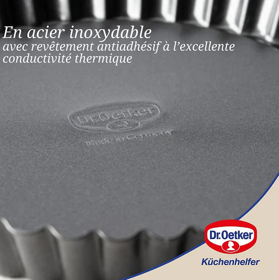 - DESCRIPTION : Le moule à tarte renversée antiadhésif Dr Oetker offre une excellente conductivité thermique, et vous assure une cuisson optimale de vos tartes sucrées ou salés et de vos gâteaux