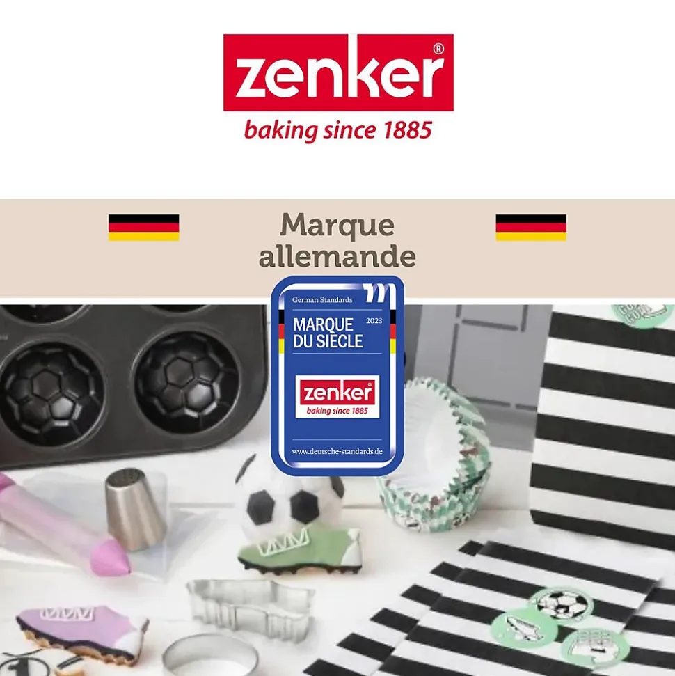 DESCRIPTION : Zenker vous propose ce moule à gâteau en forme de demi sphère afin de pouvoir réaliser des gâteaux ballons de foot, robes de princesse, tortues, et autres.LE PETIT + : Grâce à ce moule demi sphère vous pourrez préparer un délicieux gâteau ballon de foot, le gâteau d’anniversaire parfait pour les fans de football.COMPOSITION : Ce moule à gâteau demi sphère est en silicone et son support permettant de le maintenir stable est en acier inoxydable, il passe au lave-vaisselle après utilisation pour ne pas perdre de temps avec la vaisselle.DIMENSIONS : Le moule robe de princesse ou ballon de foot mesure 18 cm de diamètre et 9 cm de hauteur pour cuire un délicieux gâteau et faire plaisir à votre entourage.UTILISATION : Vous pouvez utiliser ce moule demi sphère pour préparer un délicieux gâteau en forme de ballon de foot ou de robe de princesse mais aussi des gâteaux en forme de tortue, de hérisson, de globe terrestre etc.Zenker propose ce moule demi sphère pour préparer de superbes gâteaux en forme d’hémisphère ou de sphère. Il s’agit du moule à gâteau parfait pour les fans de foot car il est possible de réaliser un gâteau en forme de ballon de foot ! Il peut aussi s’agir d’un moule robe de princesse, ainsi vous pouvez faire plaisir à la fois aux fans de football et aux fans de princesses, pas de jaloux. Ce moule à gâteau demi sphère possède un support en inox pour le maintenir lors de la cuisson ou du refroidissement du gâteau. Ce moule demi sphère passe au four jusqu’à 230°C, au congélateur jusqu’à -40°C.Zenker est une marque faisant partie du groupe Fackelmann Brands et elle propose une large gamme d’ustensiles de pâtisserie et de moules à gâteaux. Concernant les ustensiles de pâtisserie, Zenker frappe fort en mettant à disposition des ustensiles de préparation mais aussi de décoration pour les pâtissiers conf…