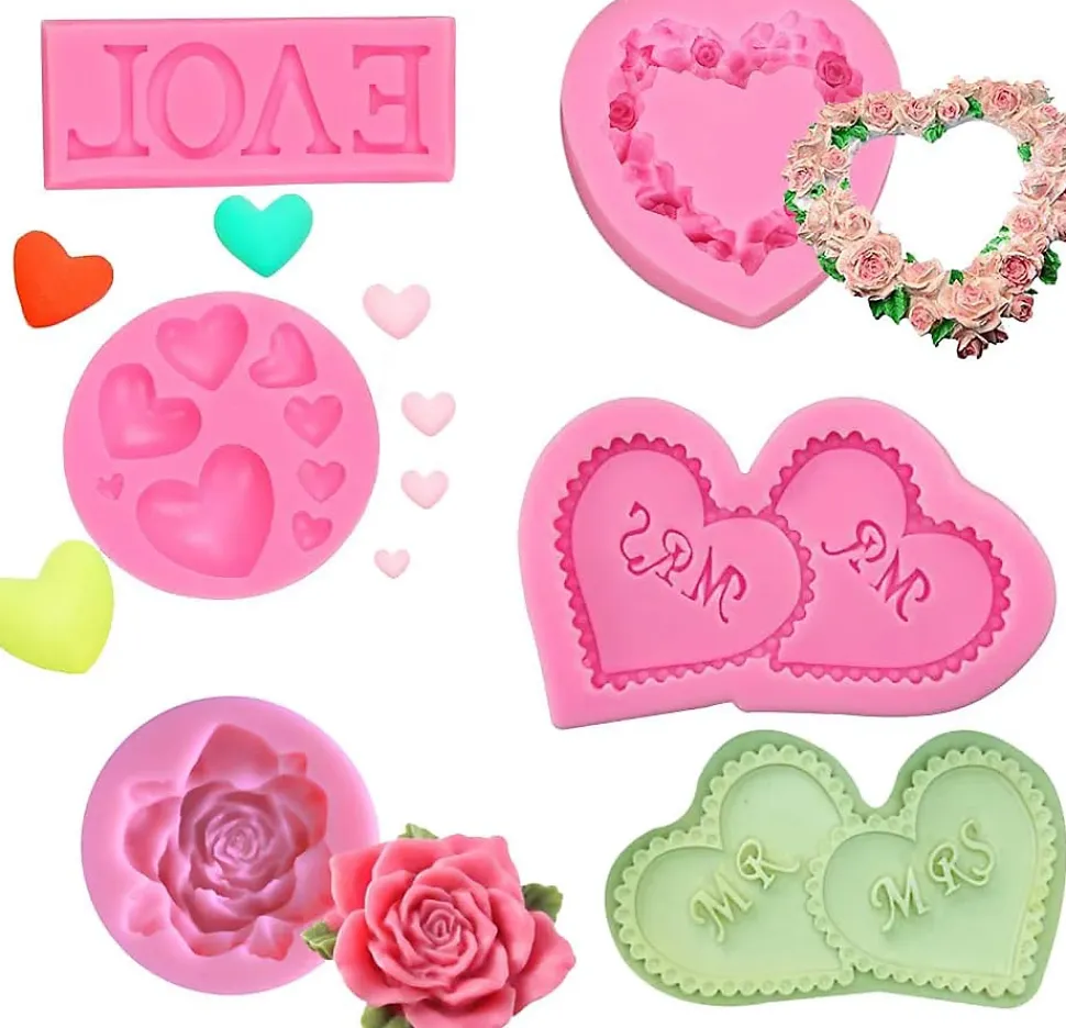 Ensemble de 5 moules à fondant en silicone. Excellent outil pour vous aider à faire de merveilleux gâteaux en forme de cœur.Les moules à chocolat sont faits de silicone de qualité alimentaire, sans BPA, non toxiques et inodores, flexibles et antiadhésifs, réutilisables et durables.facile à démouler et à nettoyer. Les moules en silicone peuvent être utilisés en toute sécurité dans les micro-ondes, les fours, les réfrigérateurs et les lave-vaisselle. Résistant aux températures de -40 °C à 230 °C. Idéal pour faire des gâteaux, des chocolats, des gélifiés, des glaçons, des pudding, de la gelée, des bonbons, des savons et bien plus encore. Parfait pour Pâques, Halloween, Noël, fête d’anniversaire, mariage, baby shower, fête de poule ou toute autre fête.