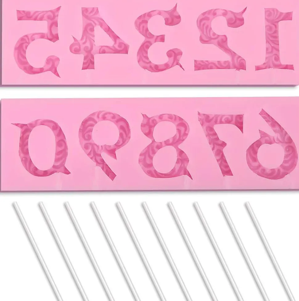 En silicone de qualité alimentaire.Passe au four, au réfrigérateur, au lave-vaisselle, la plage de température est de -40 degrés Fahrenheit à 466 degrés Fahrenheit.Les moules sont livrés avec 10 bâtons supplémentaires qui facilitent votre garniture pour le gâteau.Les moules font d’incroyables chiffres 3D, ce qui rend l’anniversaire plus impressionnant.Dimensions du moule : 17 x 5,3 x 1,4 cm